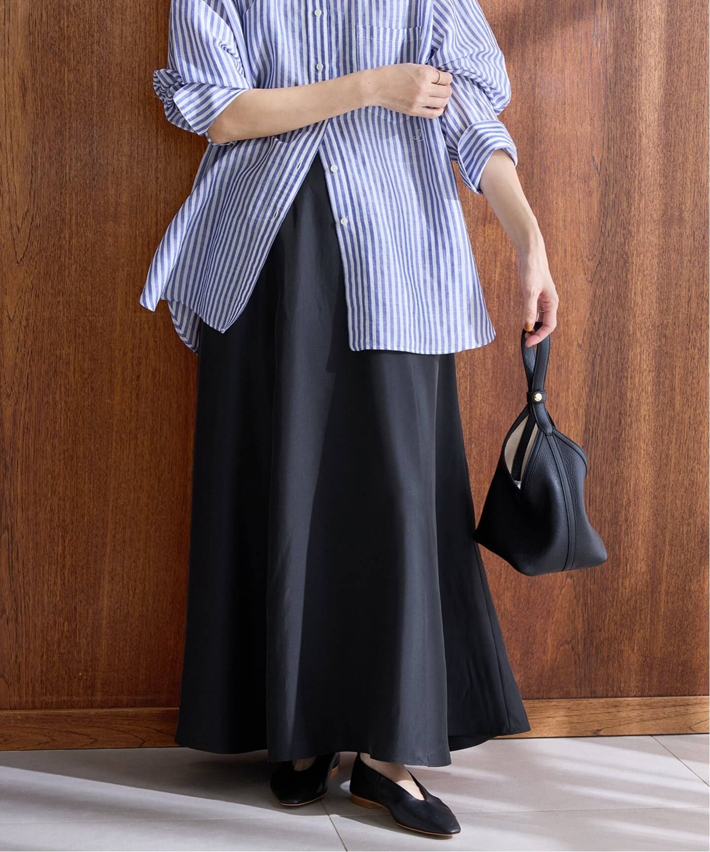 ・しなやかなフレアシルエットが魅力のキュプラサテンスカート。
