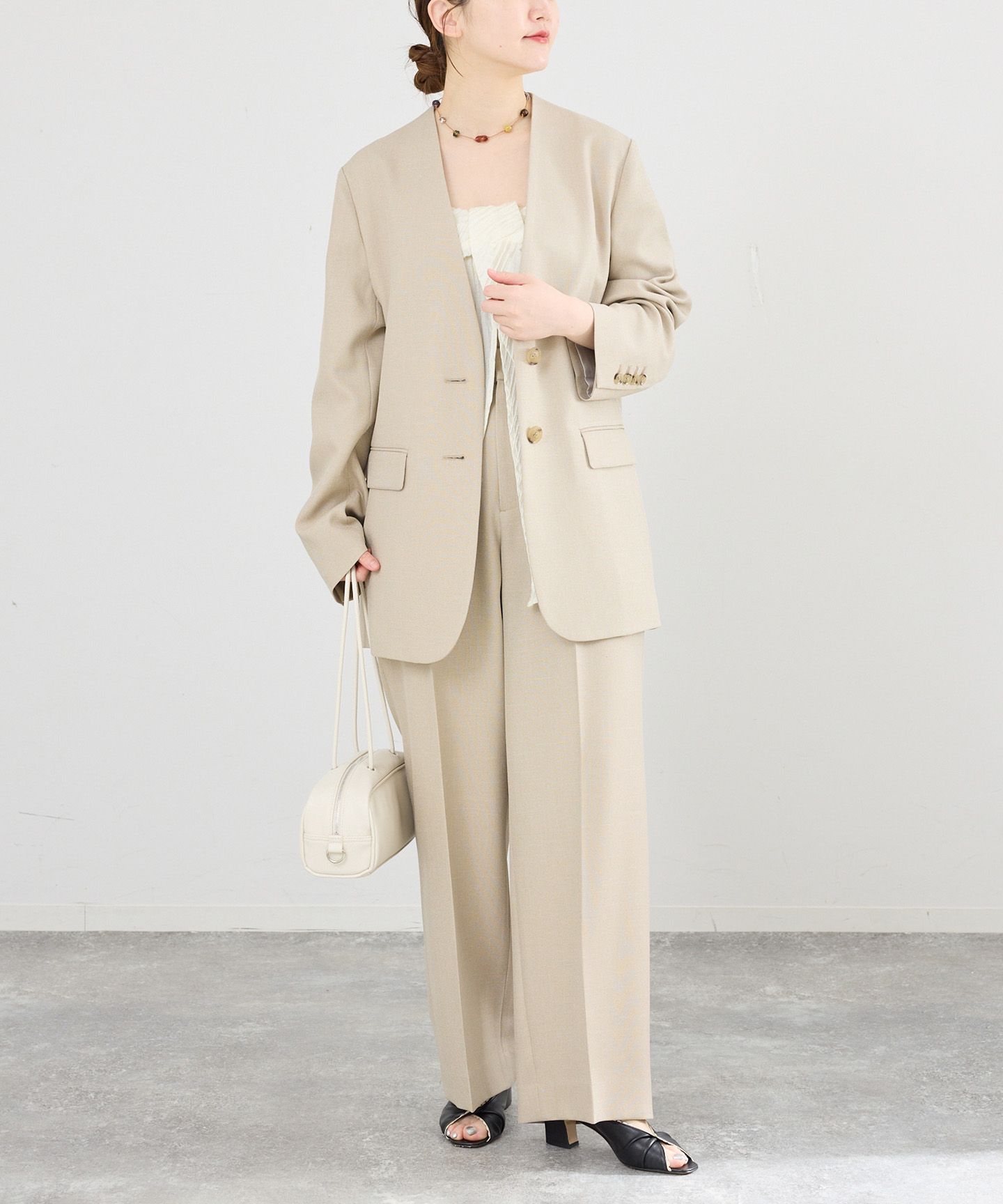 軽やかさと品をあわせ持つ、エアリーライトのセットアップ。