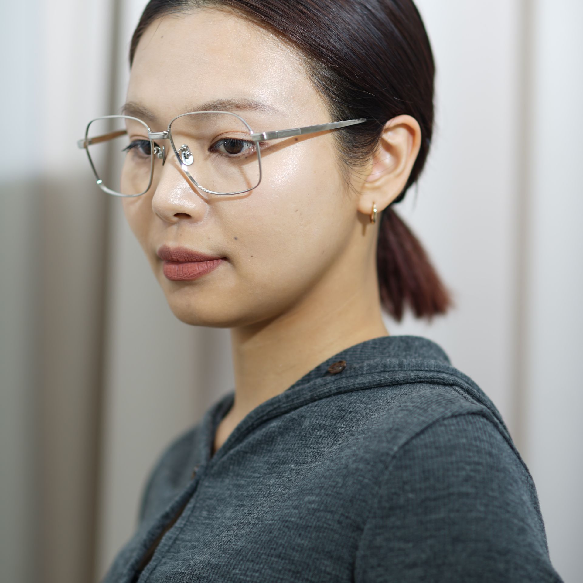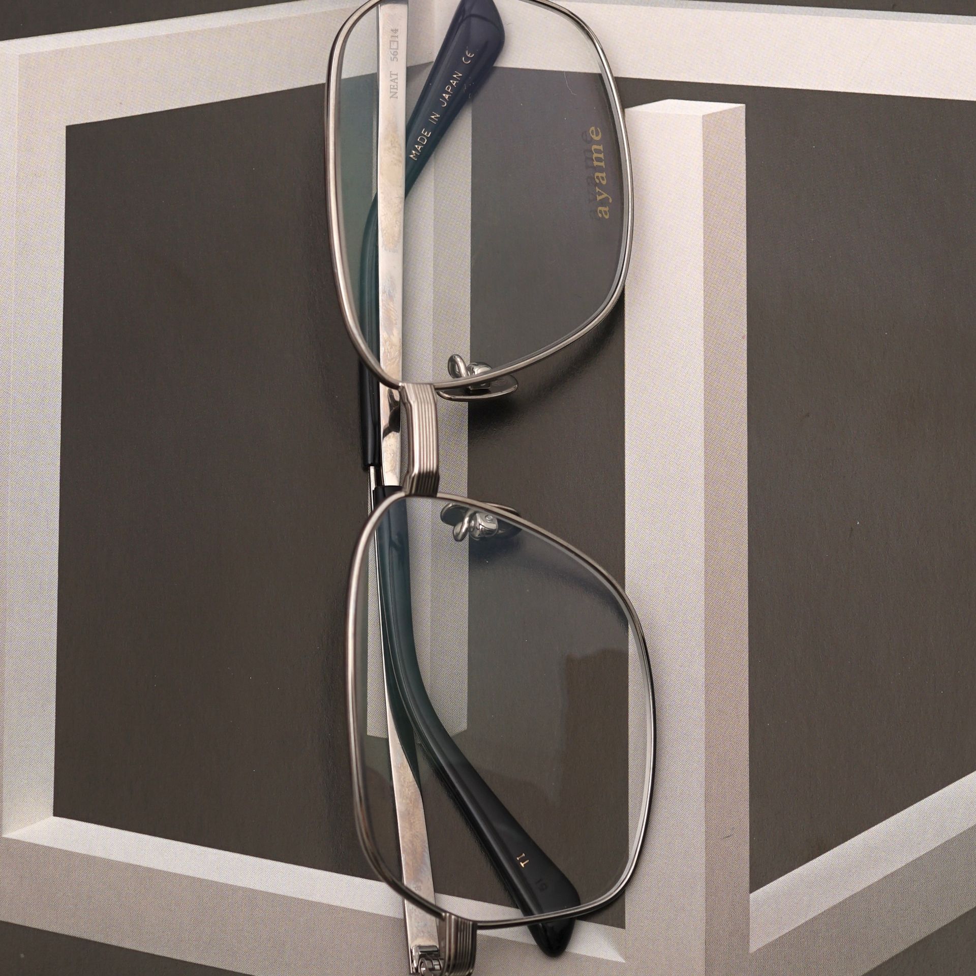 ビッグシルエットでありながら、フレームはチタン素材、ノーズパッドにはayameオリジナルのチタンパッドを採用した最適なセットアップが存在感と軽い掛け心地を同時に成立させました。