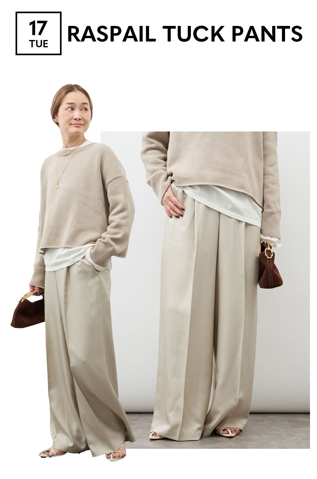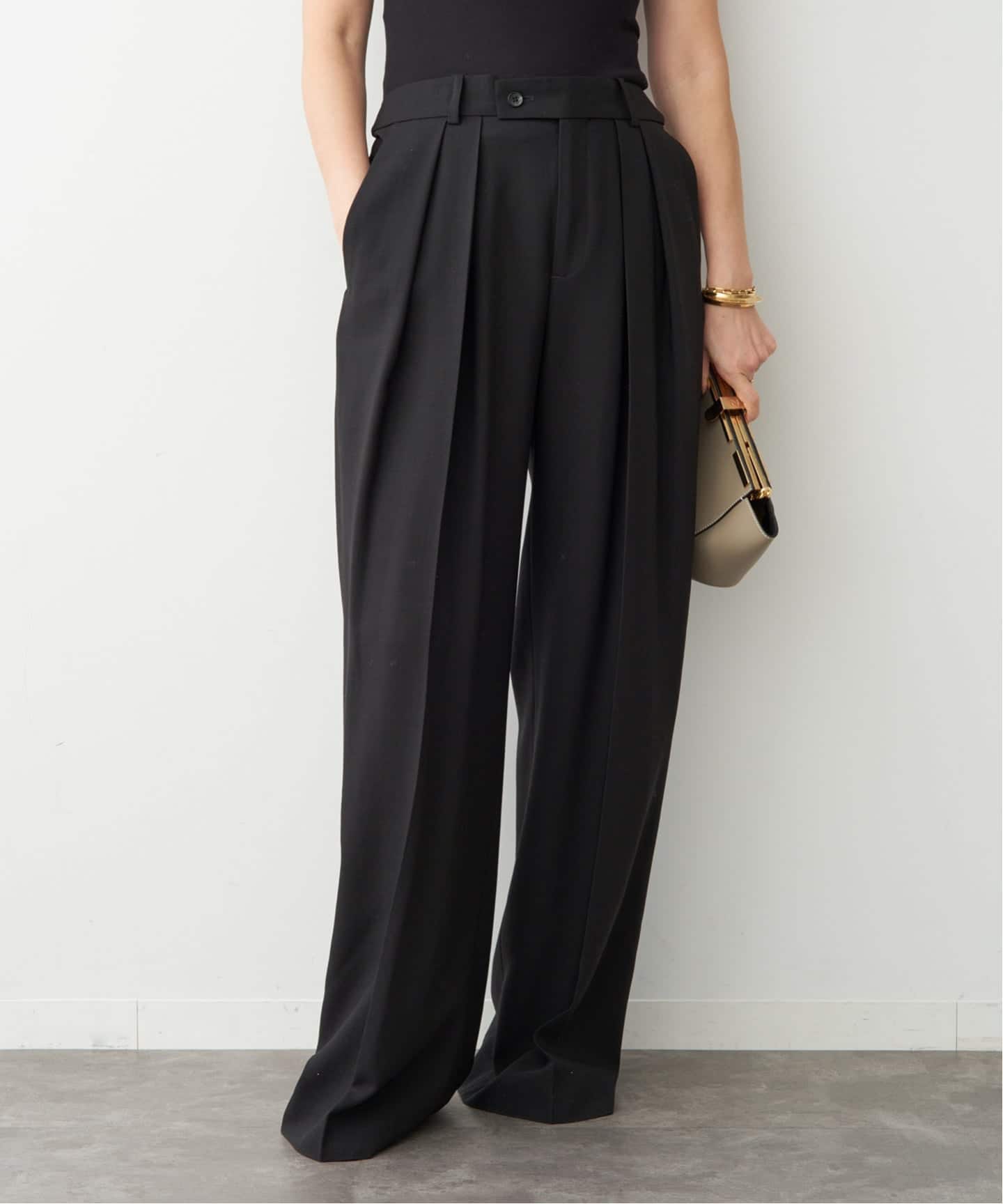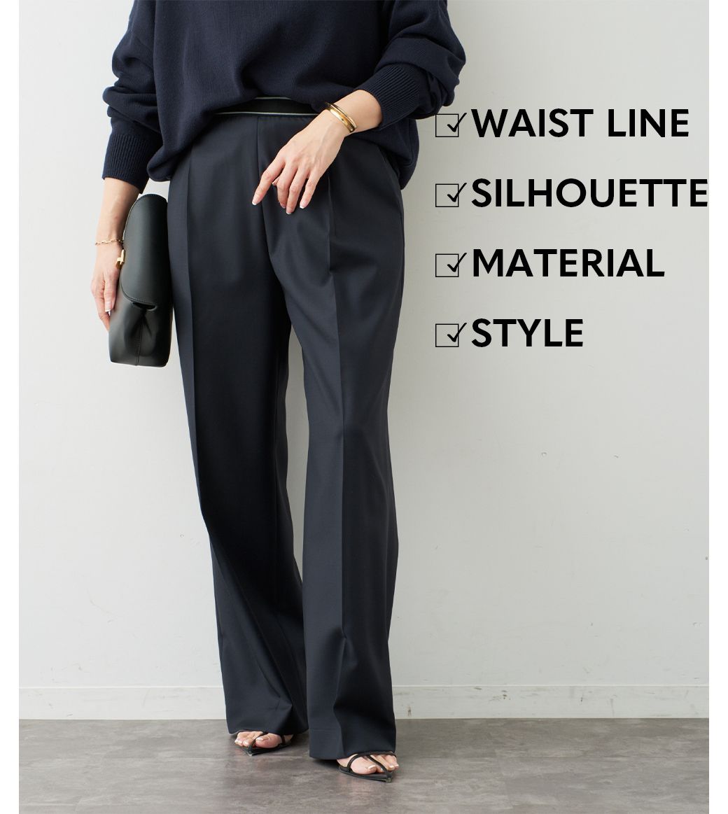 どの角度からも、どの動きに合わせても美しく見えるタックパンツ。
