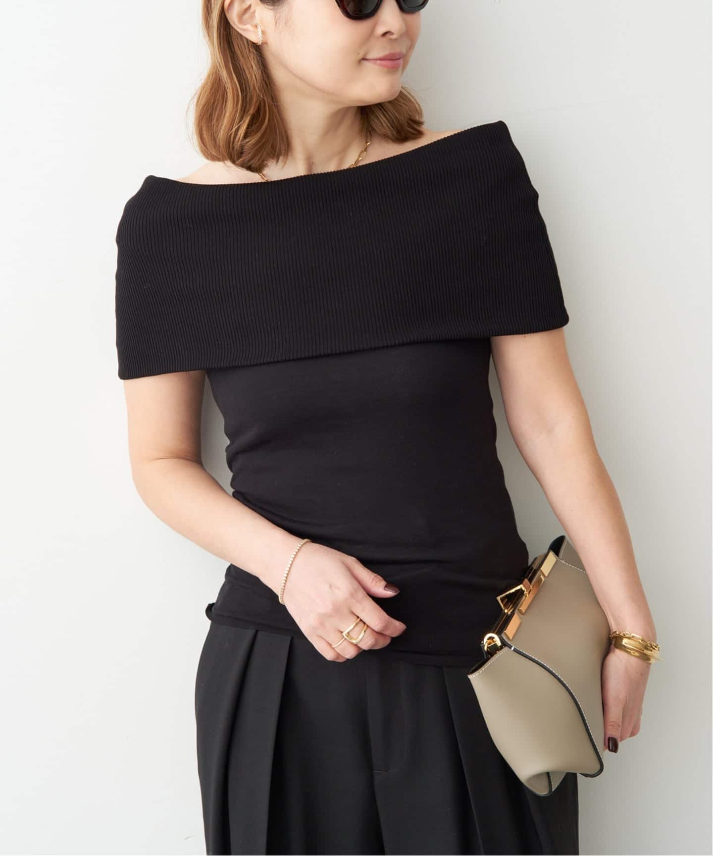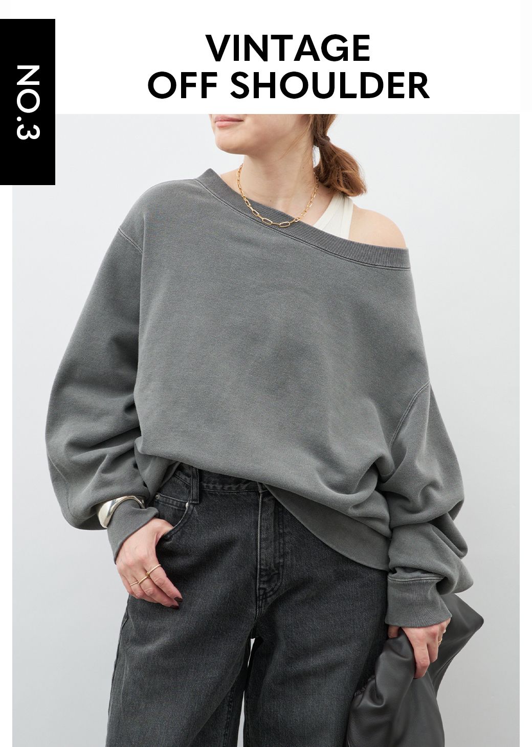 たっぷり流れるルーズさにオフショルダーのレディなムード。