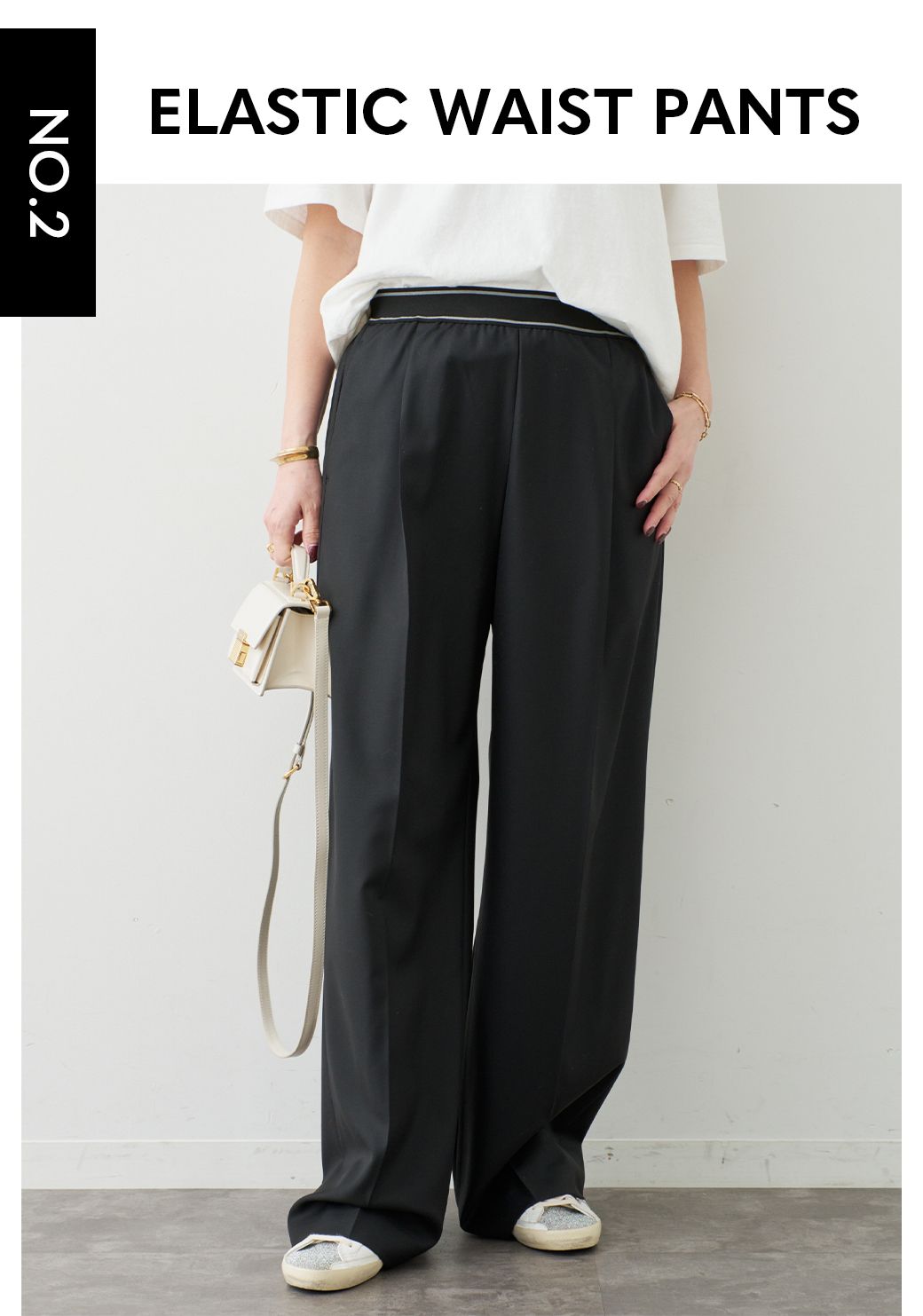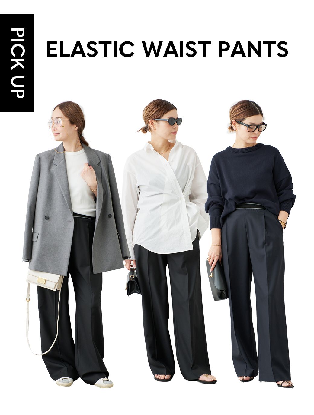 ウエストのアクセントを効かせるか隠すかで一気に印象チェンジが叶う万能パンツ。