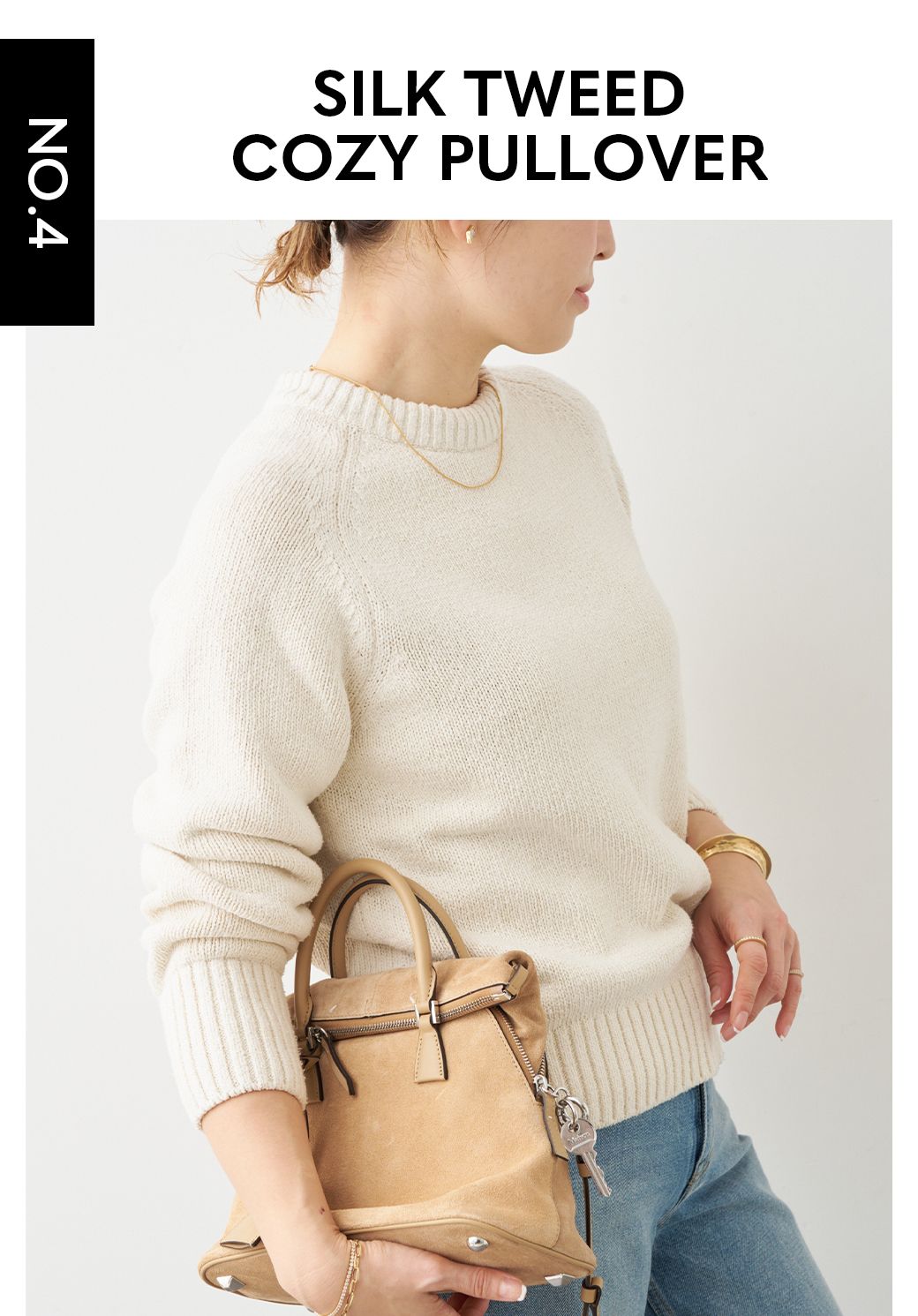 シルクが織りなすツイードニットはいつものスタイルをアップデートしてくれる。