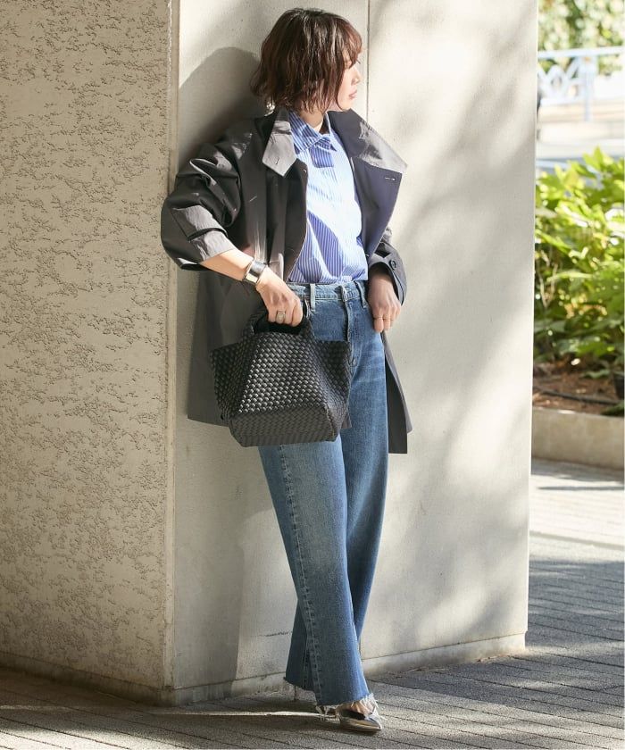 衿のタブを留めればスタンド風になり、マニッシュな着こなしも楽しめる一枚です。