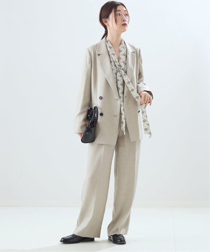 落ち感もありグッと華やかな大人の印象になるボウタイブラウス。前後ろで着用可能な万能ブラウス。ボウタイを前で結んだり、後ろで結んだりと着方にもバリエーションあり。スラックスパンツなど少しメンズライクなアイテムとのスタイリングがおすすめです。