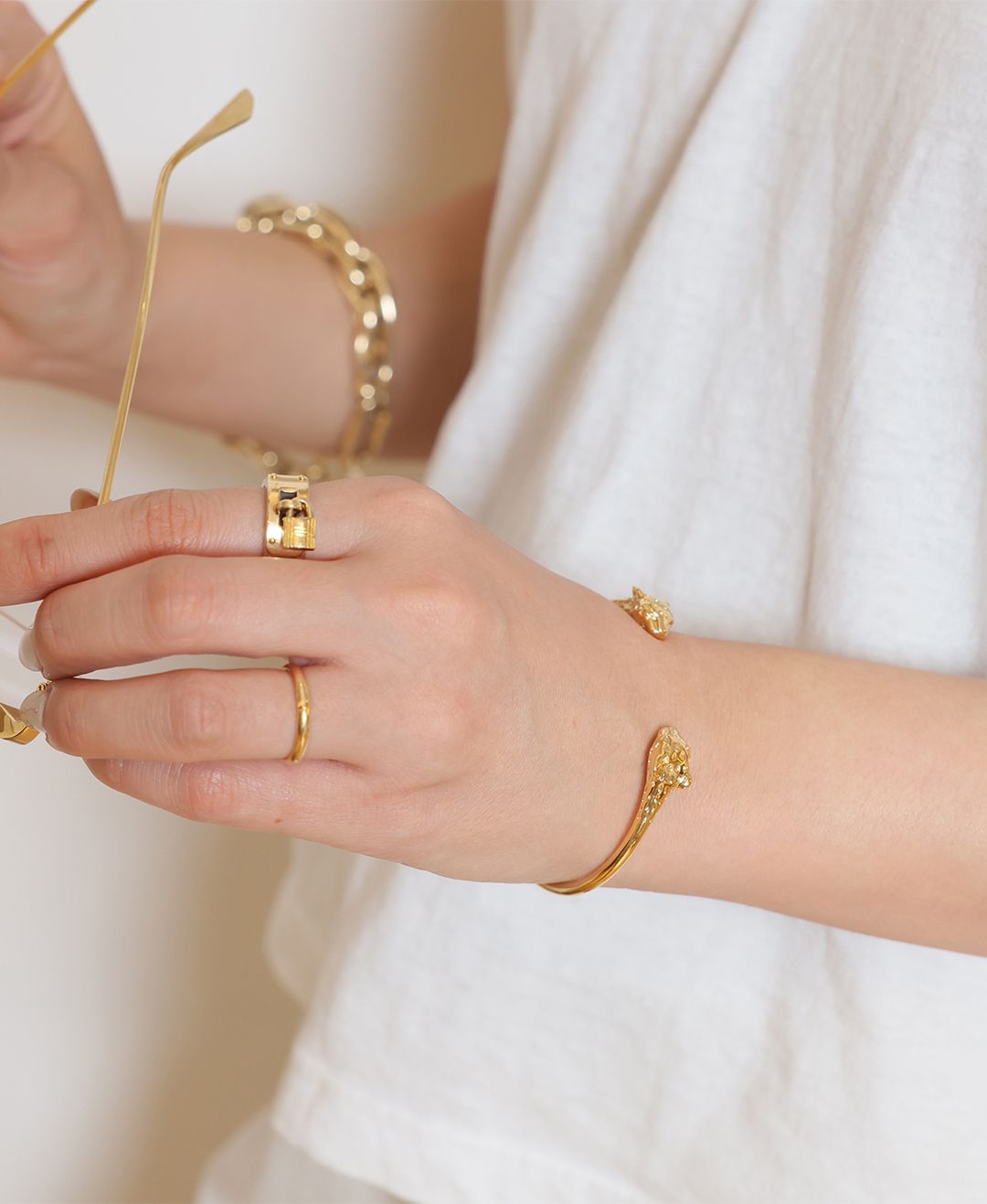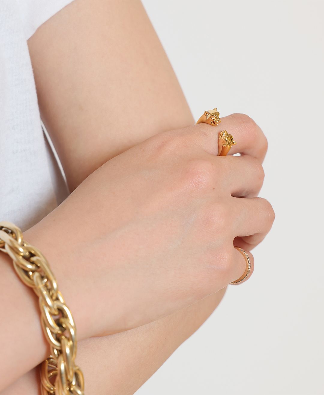 パンサーのモチーフが目を惹く、存在感のあるリングとバングル。