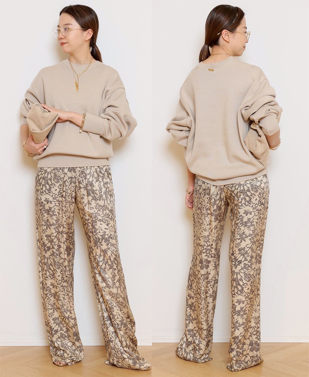 レーヨンシルクのさらりとした薄手素材が心地よく、シンプルなスタイリングにも華やかさを添えてくれます。