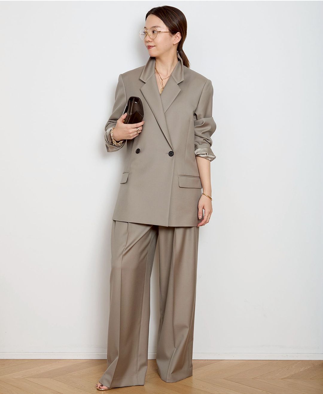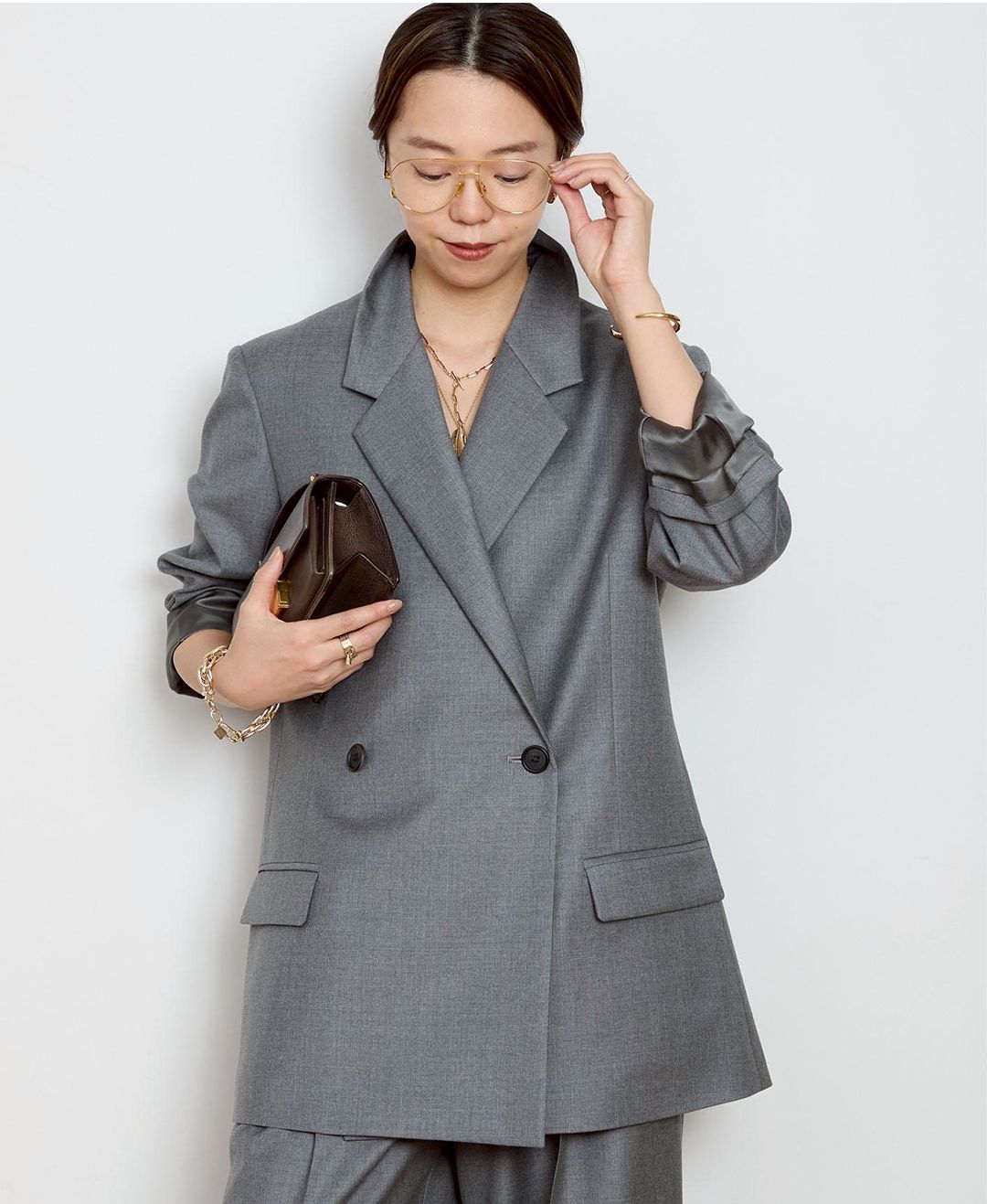 ミニマルなセットアップも、アクセサリーや着こなし次第でぐっと艶やかな表情へ。