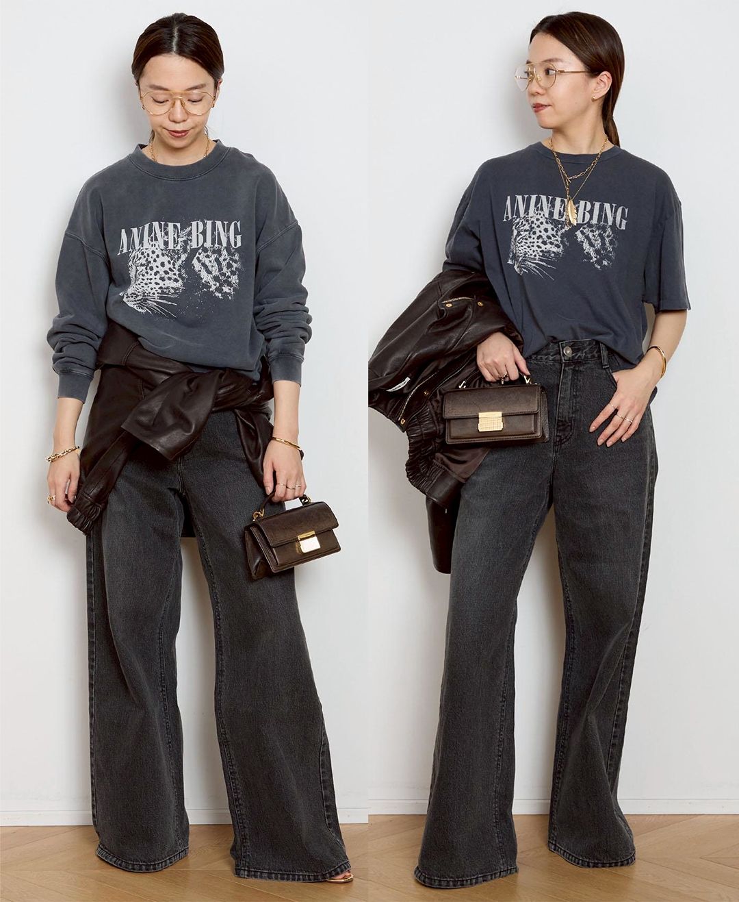 ANINE BINGのレオパード柄Tシャツとスウェット。