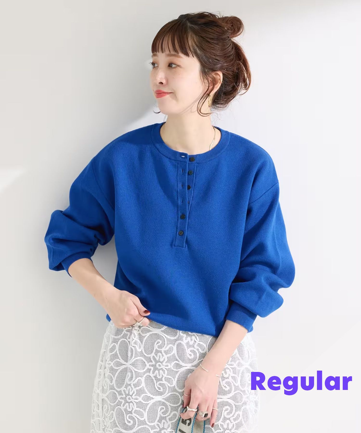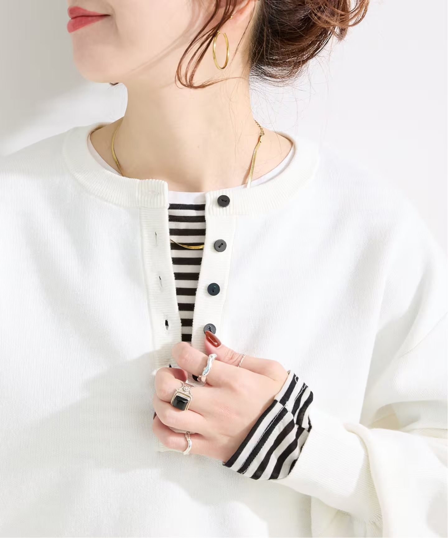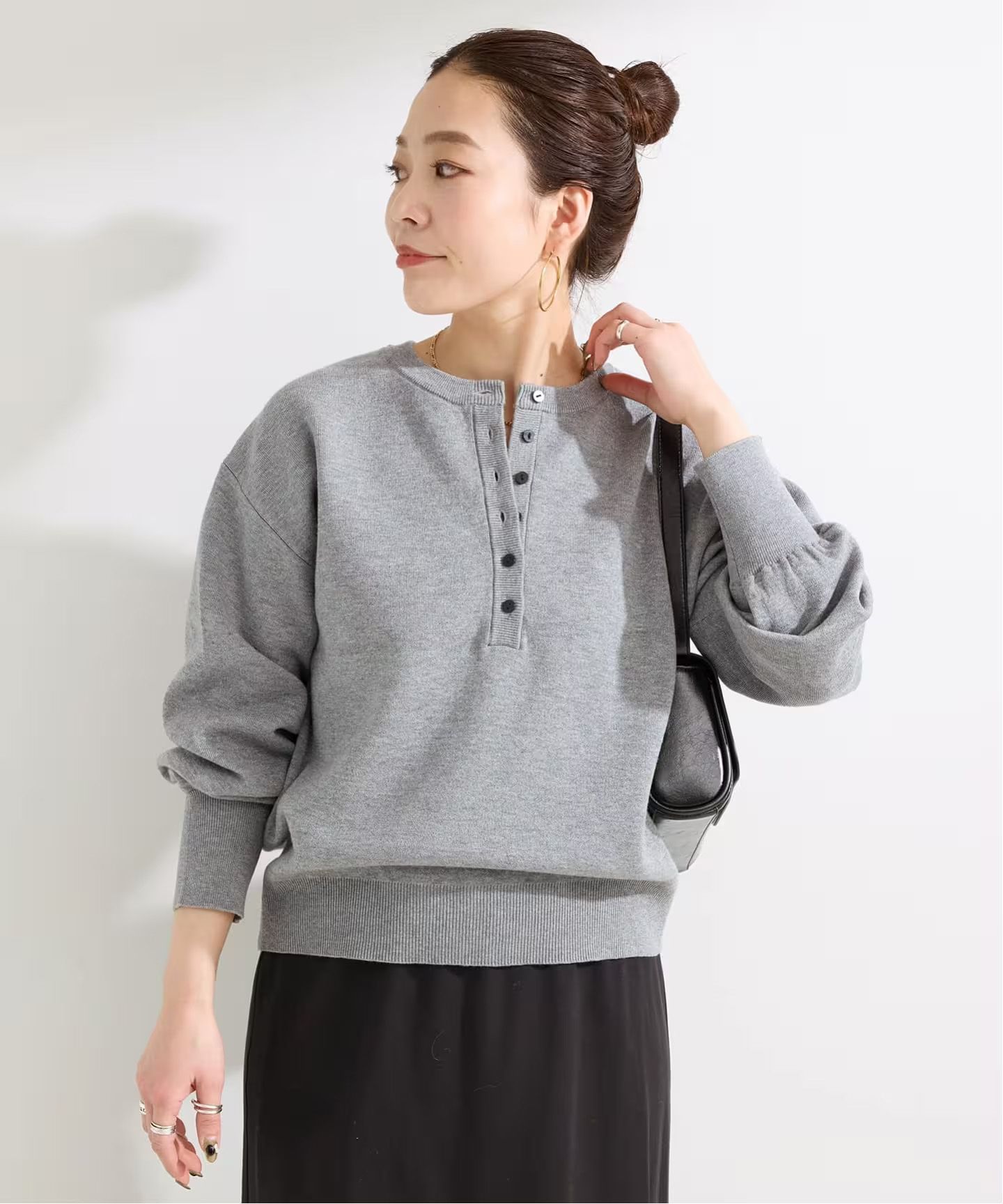 シンプルなデザインですが釦ヘンリーネックが今年らしいスタイルへ導いてくれます。