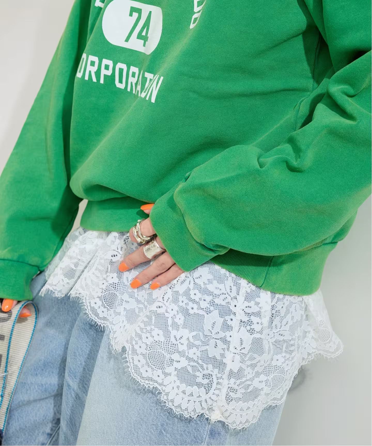 裾にはレース特有のスカラップを活かし、透け感のある軽やかな仕様にしています。