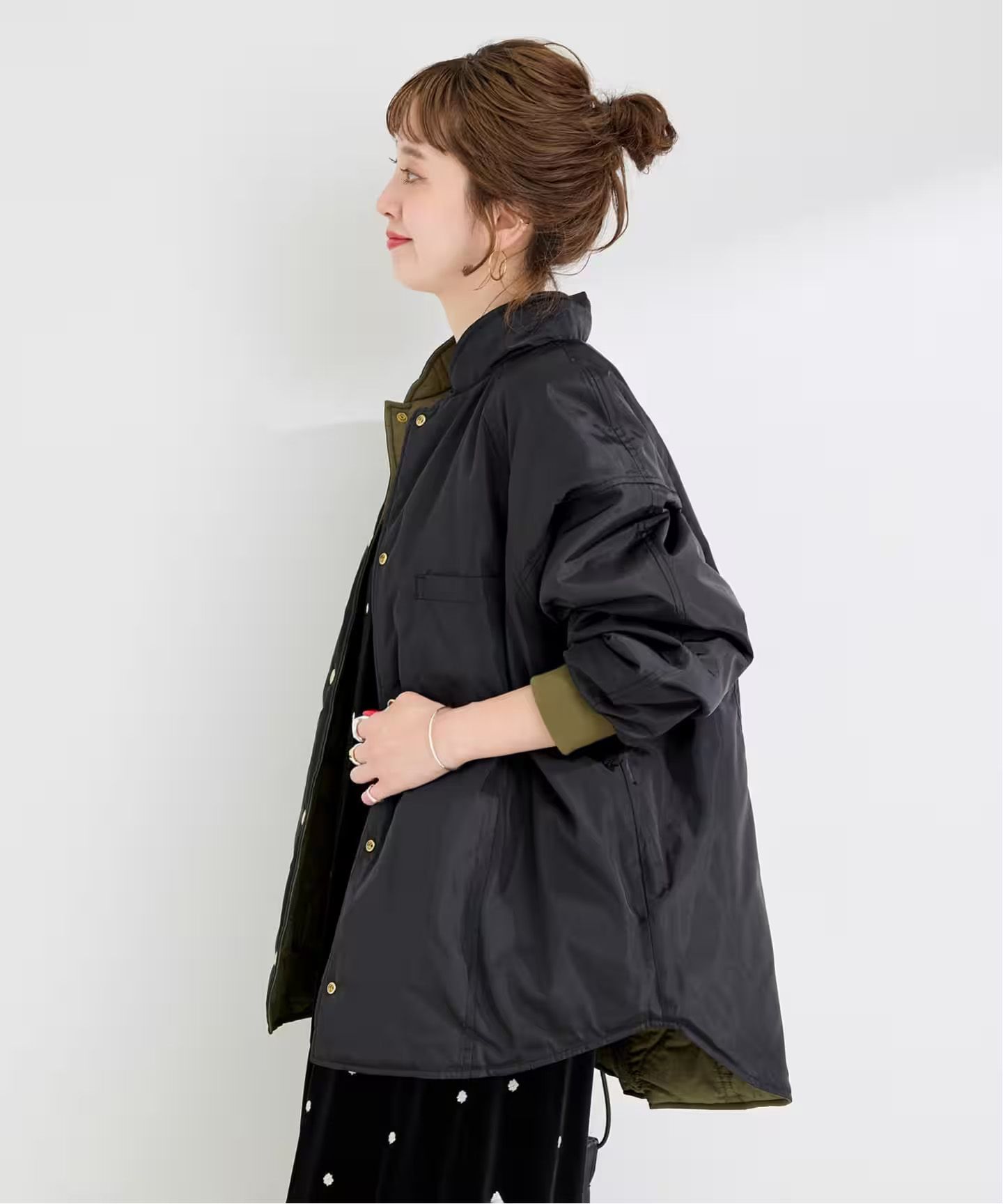 中綿入りの両面使いできるリバーシブルブルゾン。