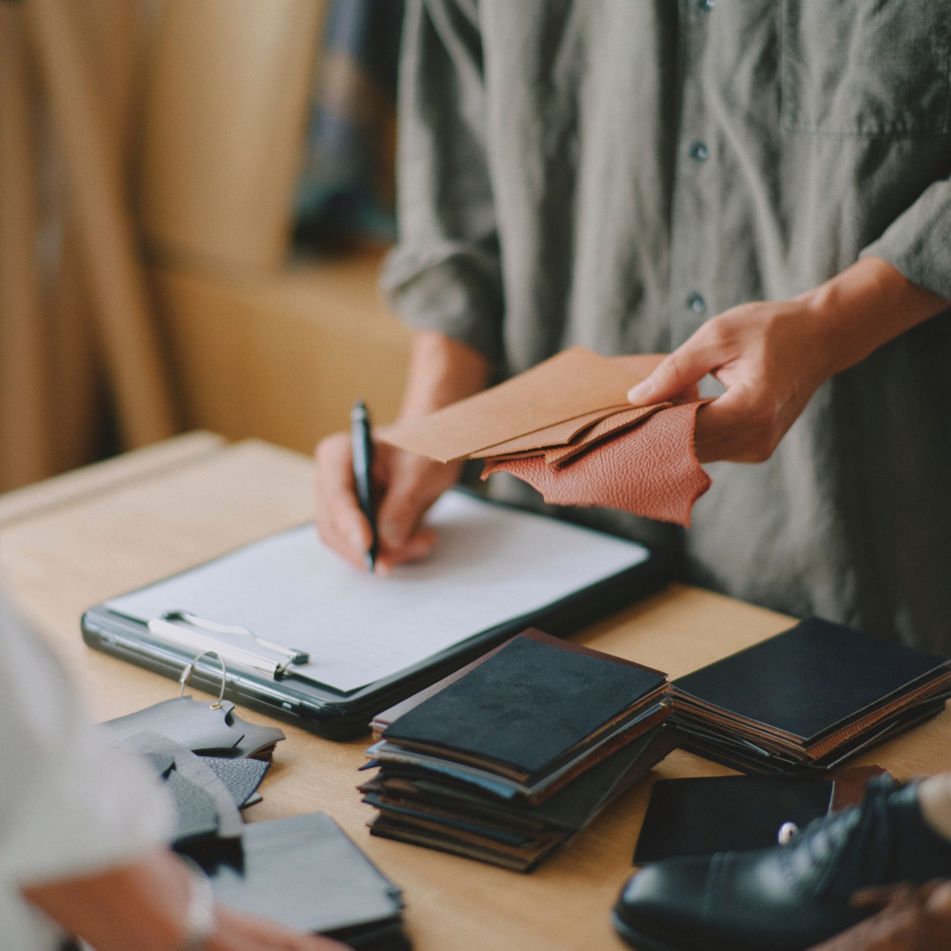 オーダーの流れとしては、モデルを決めていただき、サイズを合わせていきます。そしてレザーを決めます。