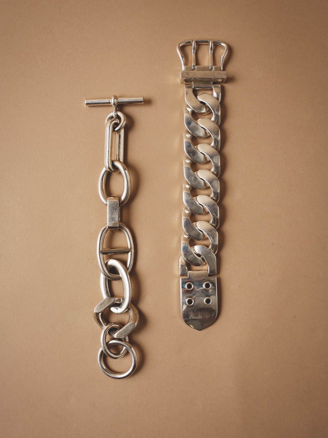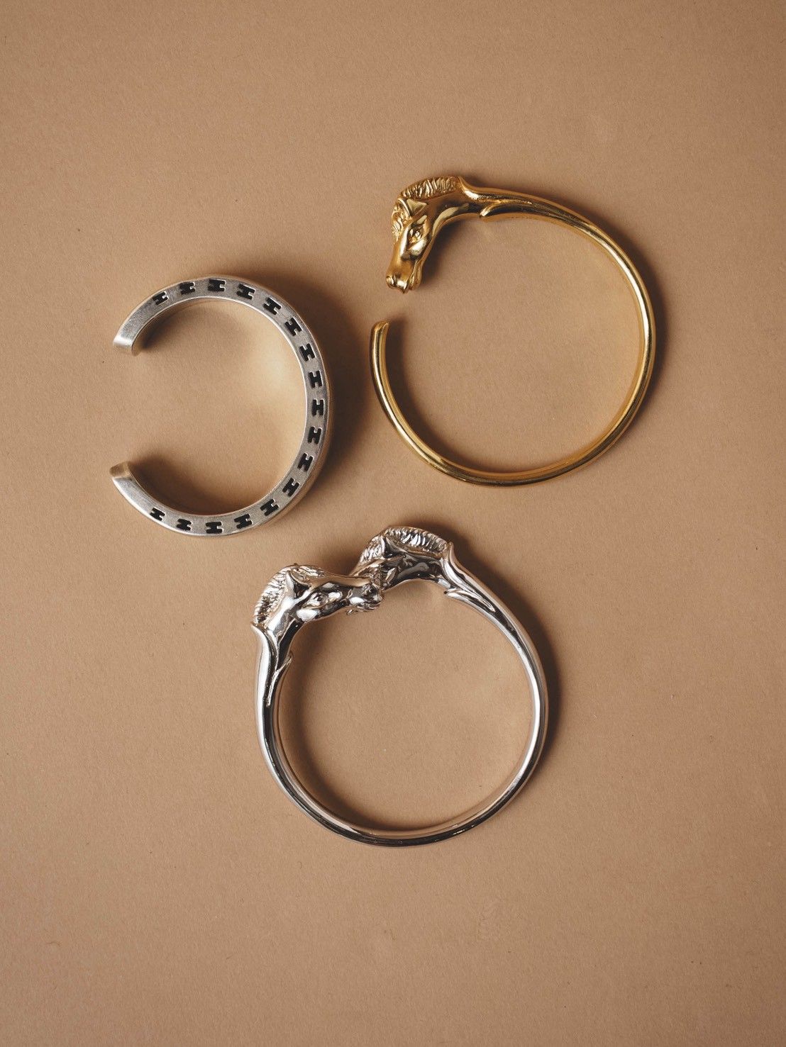HERMESのVintage Jewelryは、過度な主張をせず、それでいて確かな存在感を放ちます。そこにあるのは、デザインとしての完成度と品格。無駄を削ぎ落したフォルム、計算されたボリューム、素材そのものの美しさを引き立てる仕立て。Jewelryでありながら、どこかプロダクトやテーラードに通じる構築的な美しさを感じさせます。