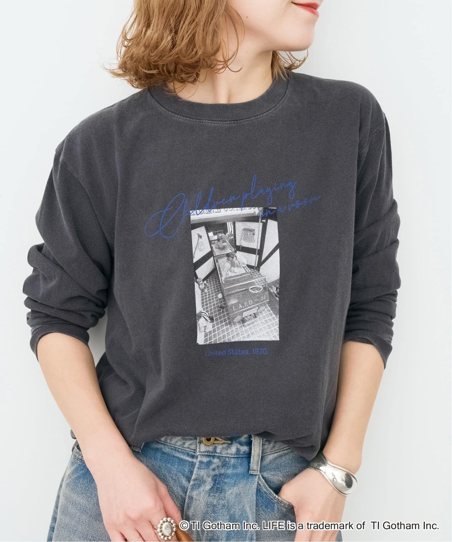 存在感のあるフォトプリントが目を引く別注ロンT。