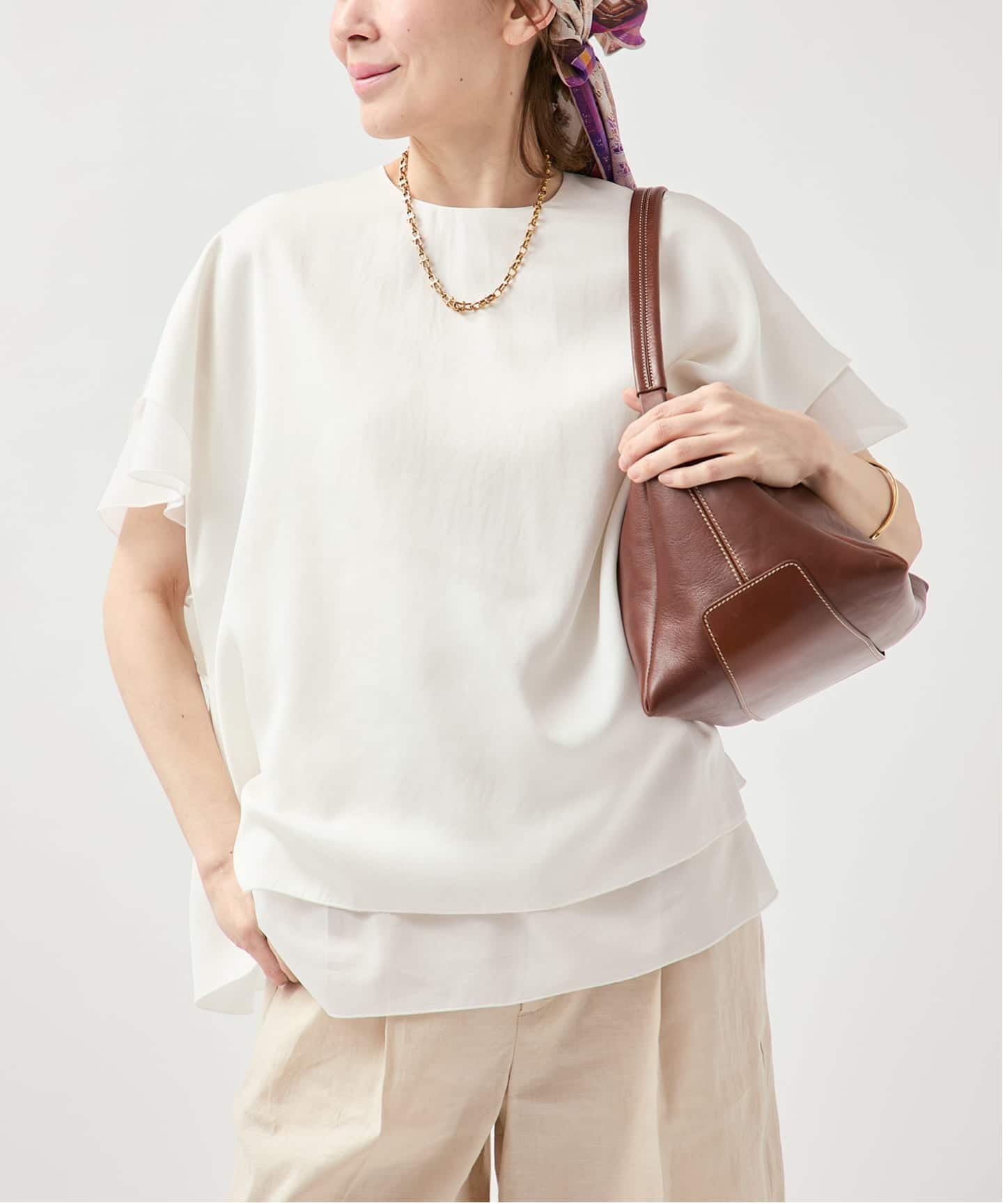 ―「一枚で華やぐ。揺れが美しいレイヤードブラウス。」