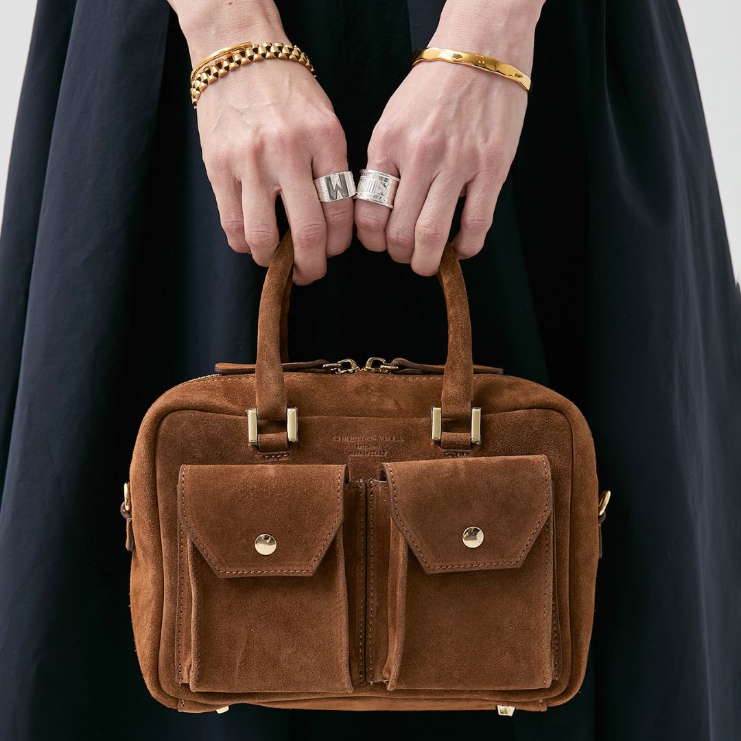 Christian Villaからは、上質スエードを贅沢に使った注目バッグが到着。