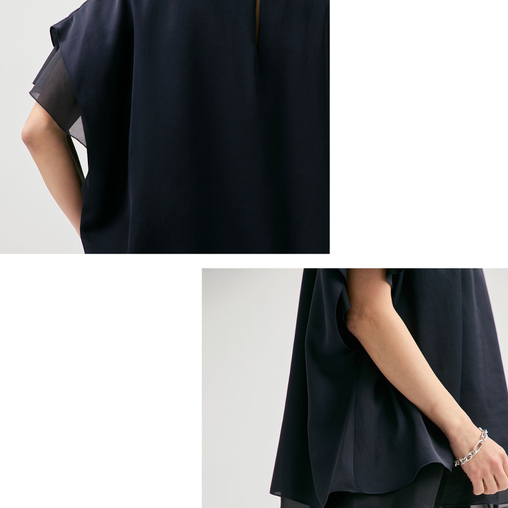 とろみのあるスパンサテンを贅沢に使用し、動くたびふわりと揺れるシルエットが美しい一枚。