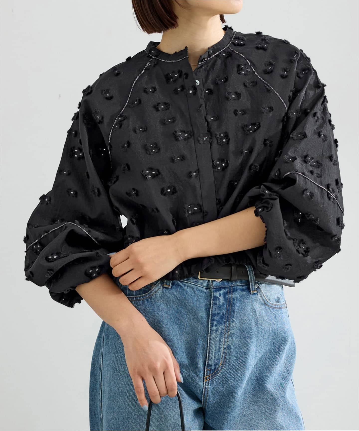 デニム合わせのカジュアルからきれいめコーデまで、上品な華やぎを添える万能アイテムです。