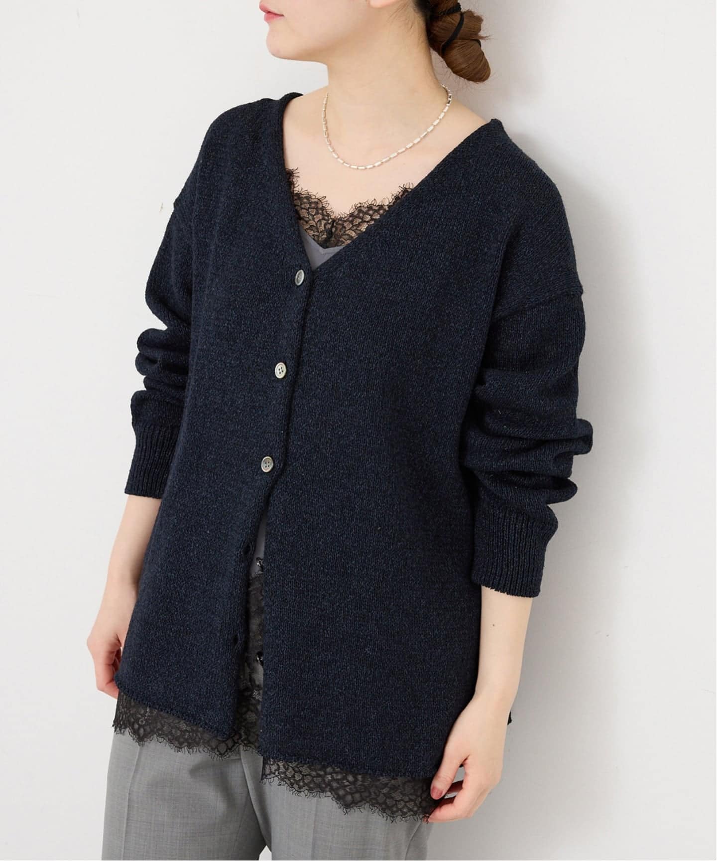 取り外し可能なレース襟がコーデのポイントになり、上品さと遊び心を両立します。
