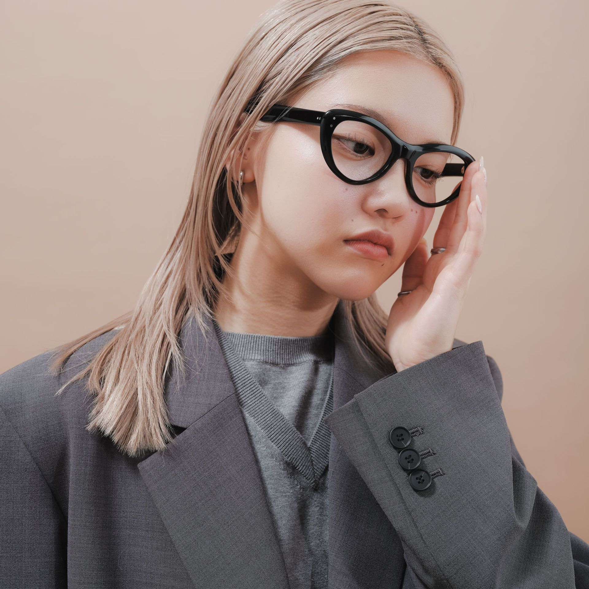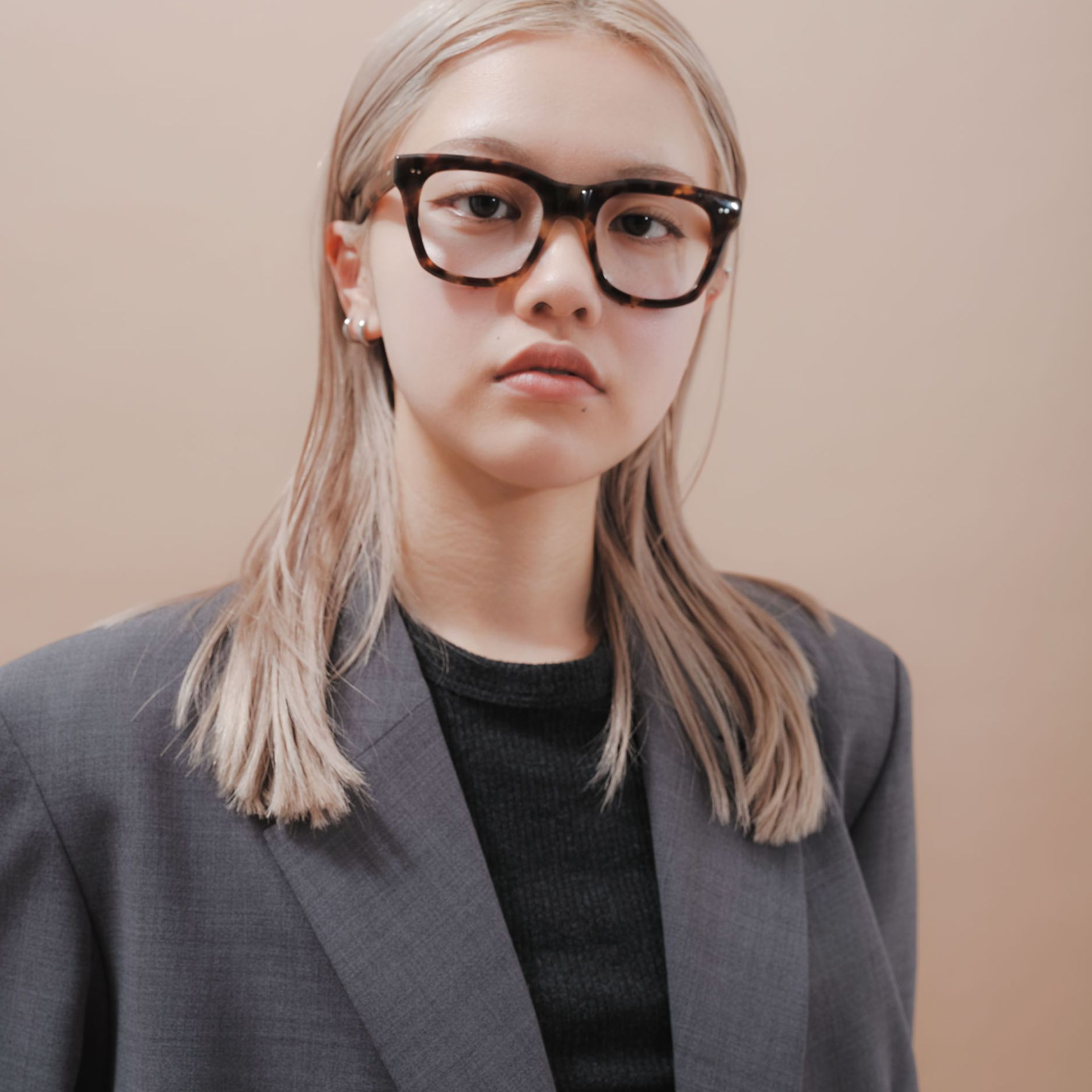 05.存在感あるハバナフレームが顔周りにしっかりとアクセントをプラス。凛としたモードな雰囲気を際立たせています。