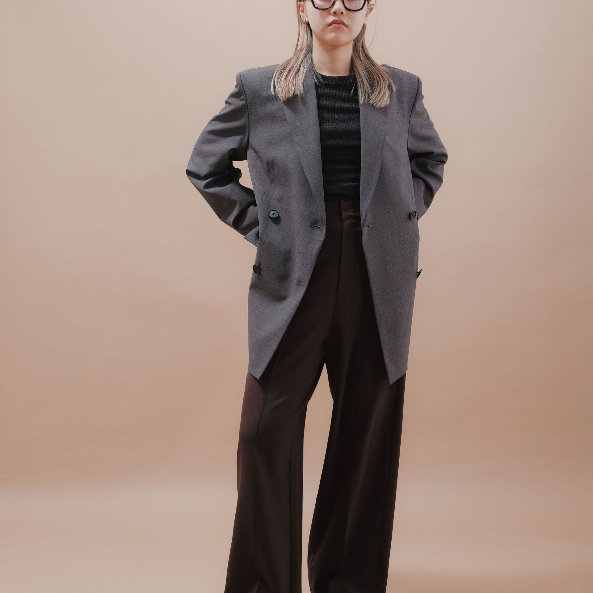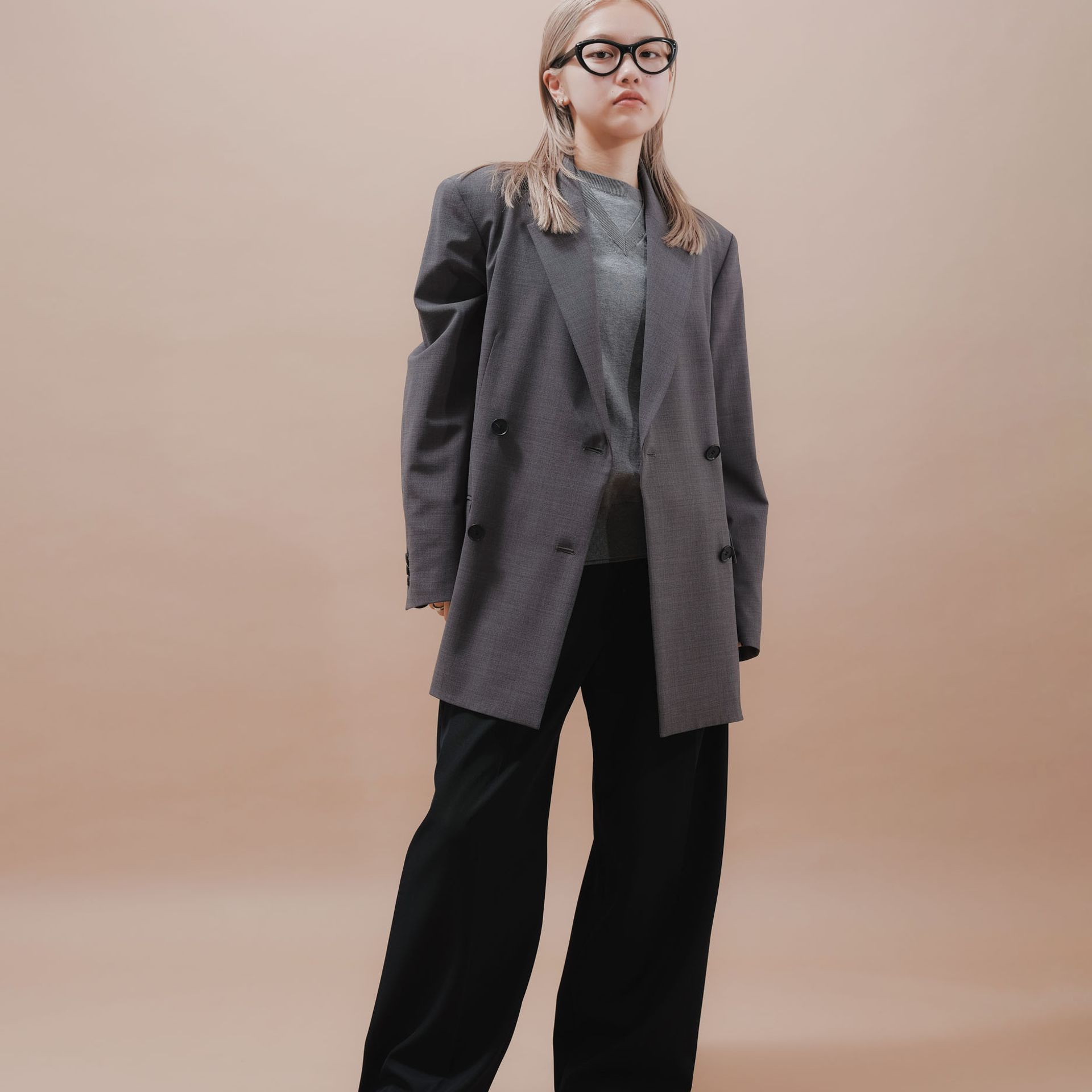 03.マニッシュなジャケットにキャットアイのバランスが知的なアクセントをプラス。モードさの中にも、遊びある目元と足元のバランスが全体をまとめてくれます。