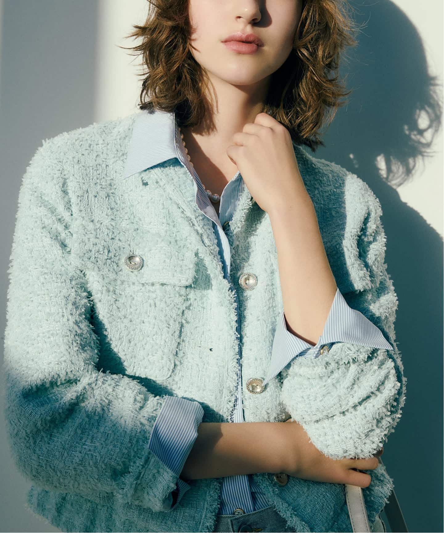 デニムパンツにアイスパステルのシアーシャツやトップスを合わせるのがトレンド!