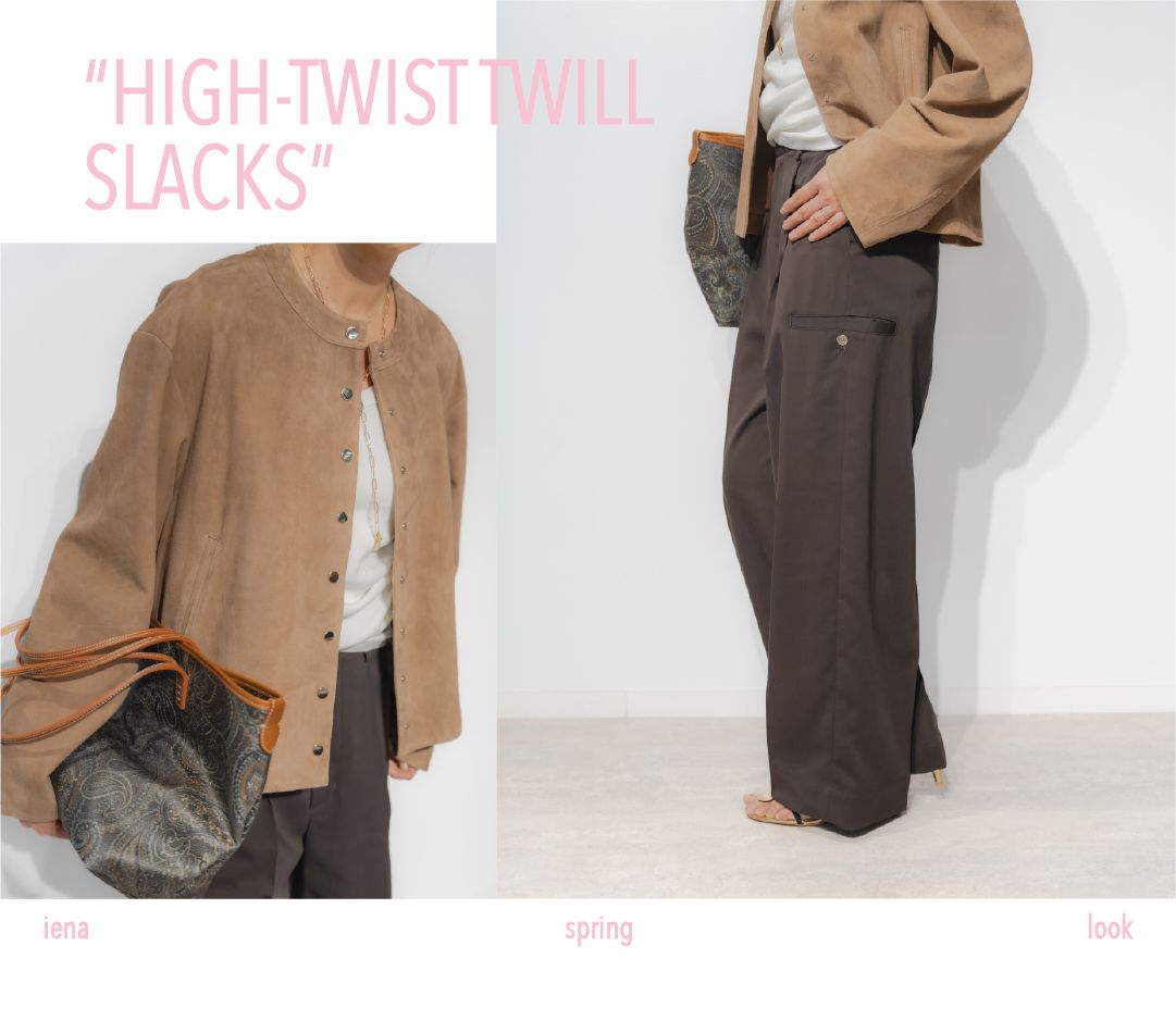 きれいめにもカジュアルにも穿けるハイツイストツイルパンツ。ほどよくラフさもあり、デイリーに取り入れやすい一本です。ブラウンのパンツには、同系色のシープレザーのブルゾンを合わせてトーン×トーンに。色調を揃えることで、全体やわらかい印象に仕上げています。素材のコントラストを楽しみながら、シックで落ち着きのあるスタイリングに。