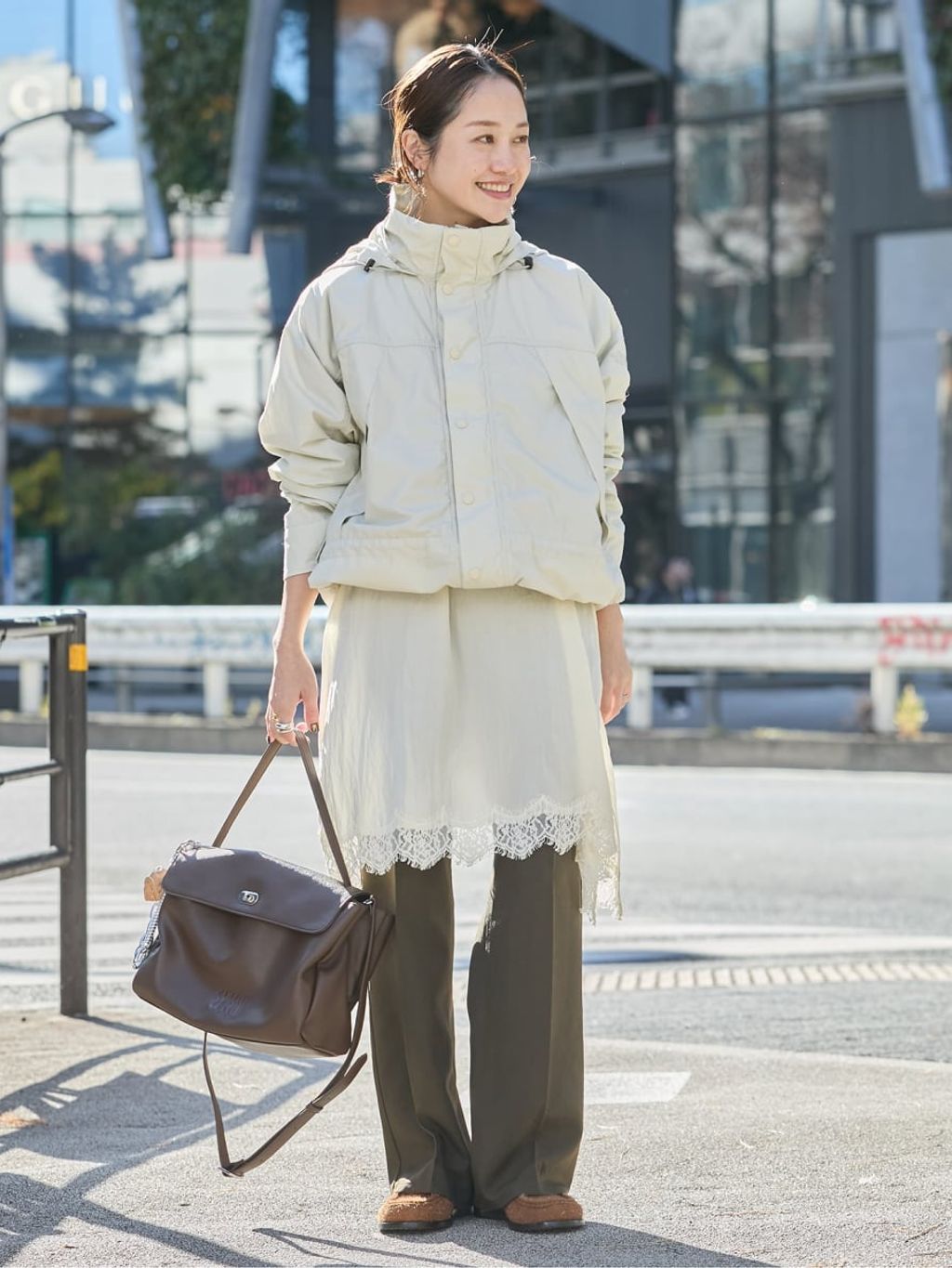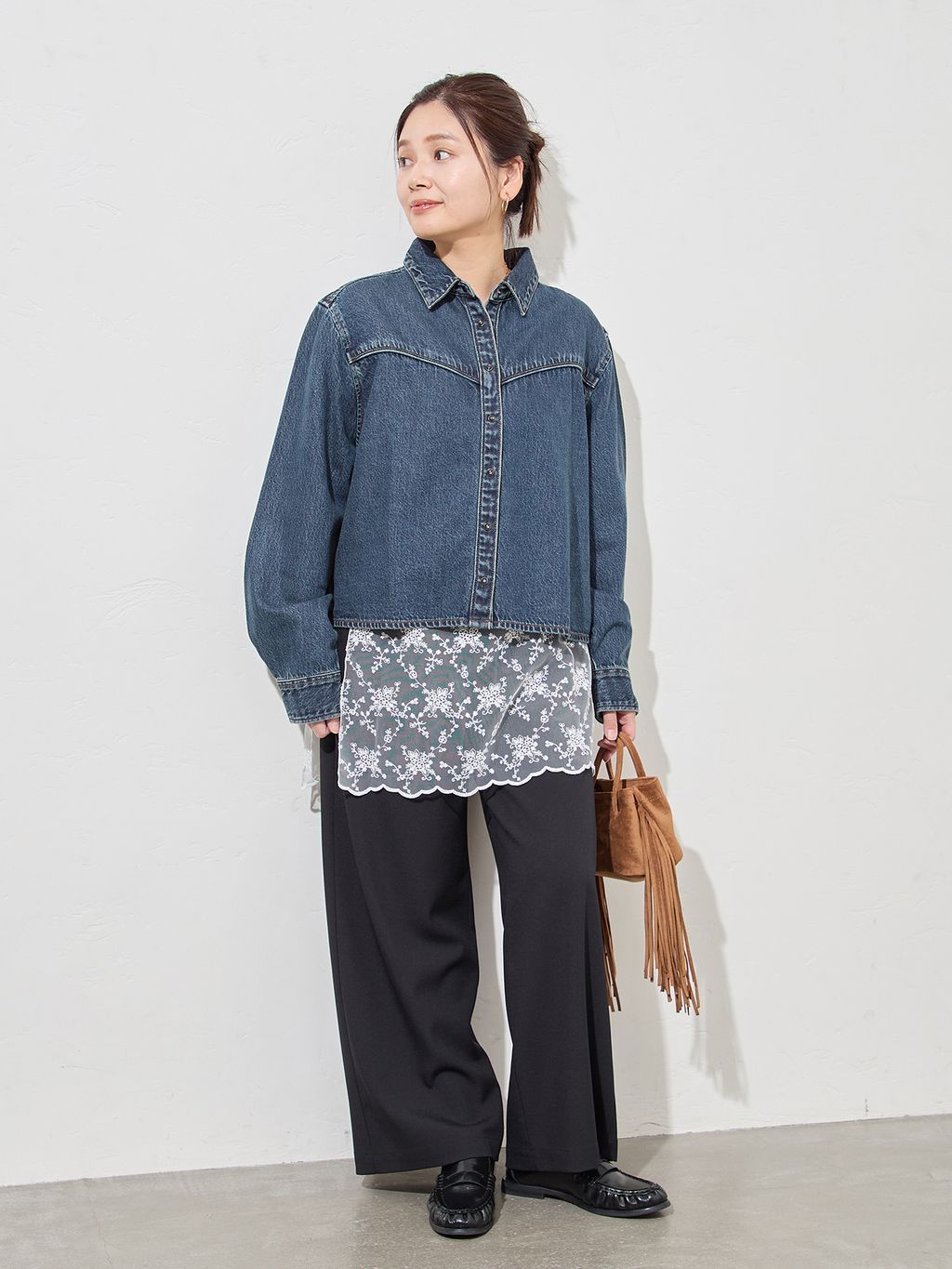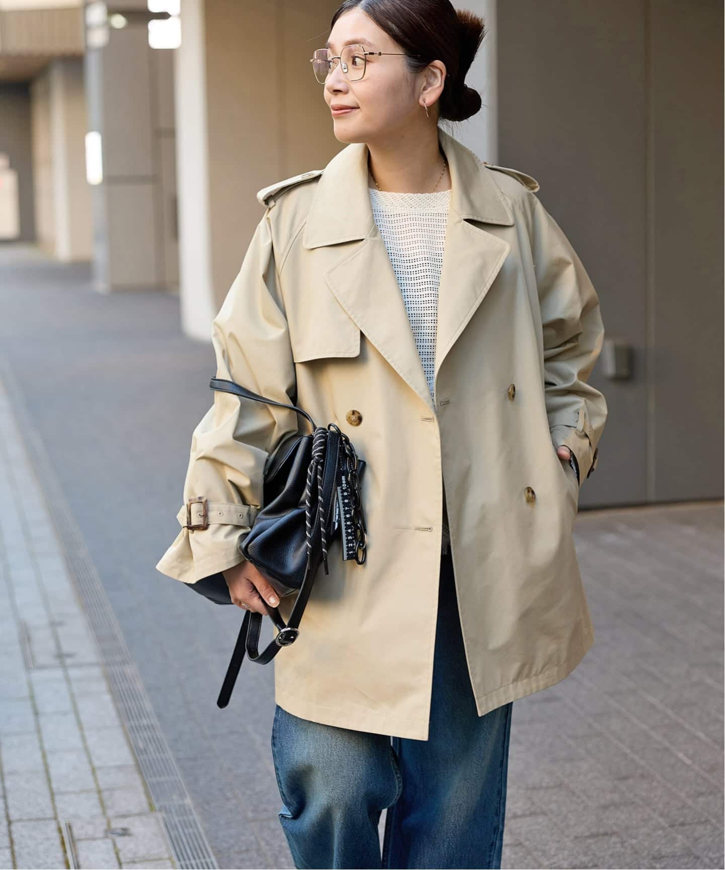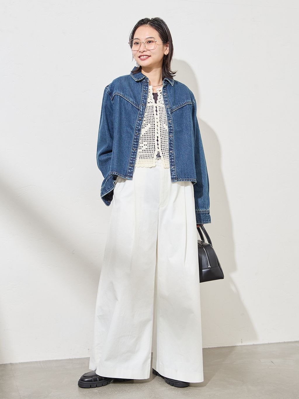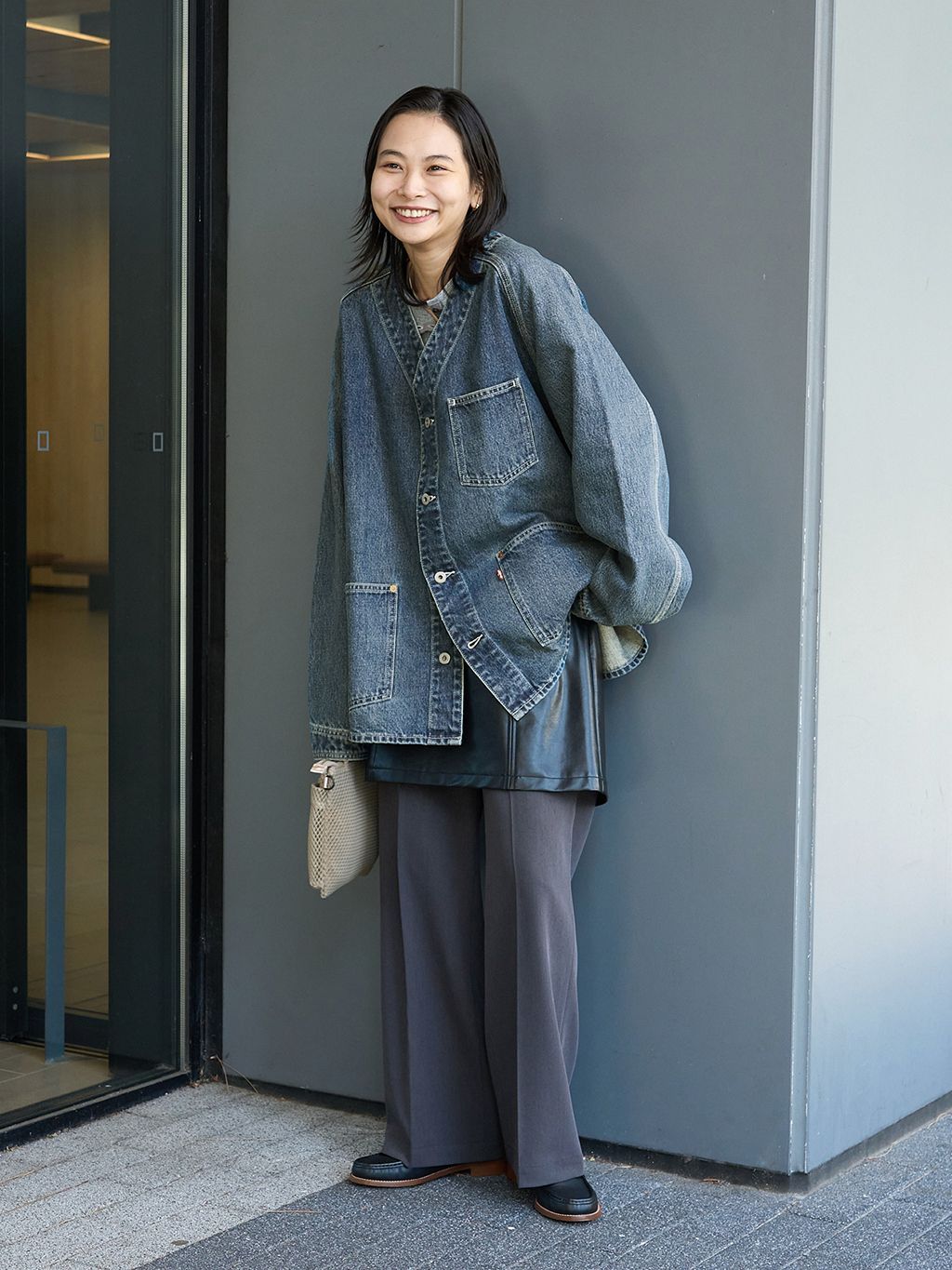 着丈短め、身幅広めのトレンド感のあるバランスもポイント。