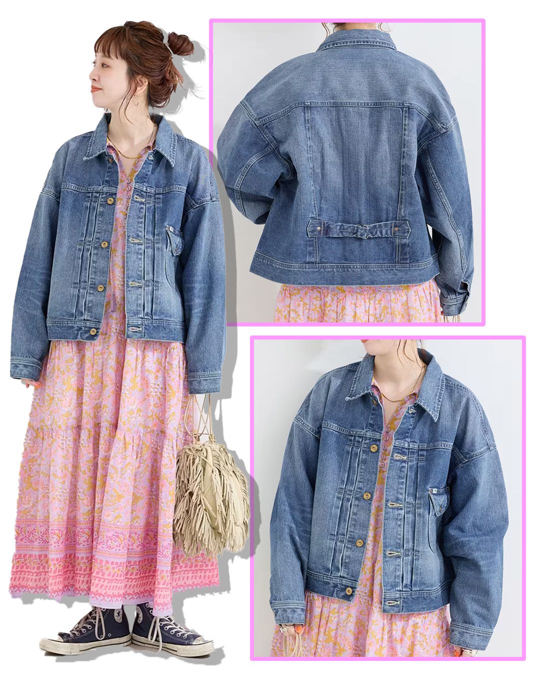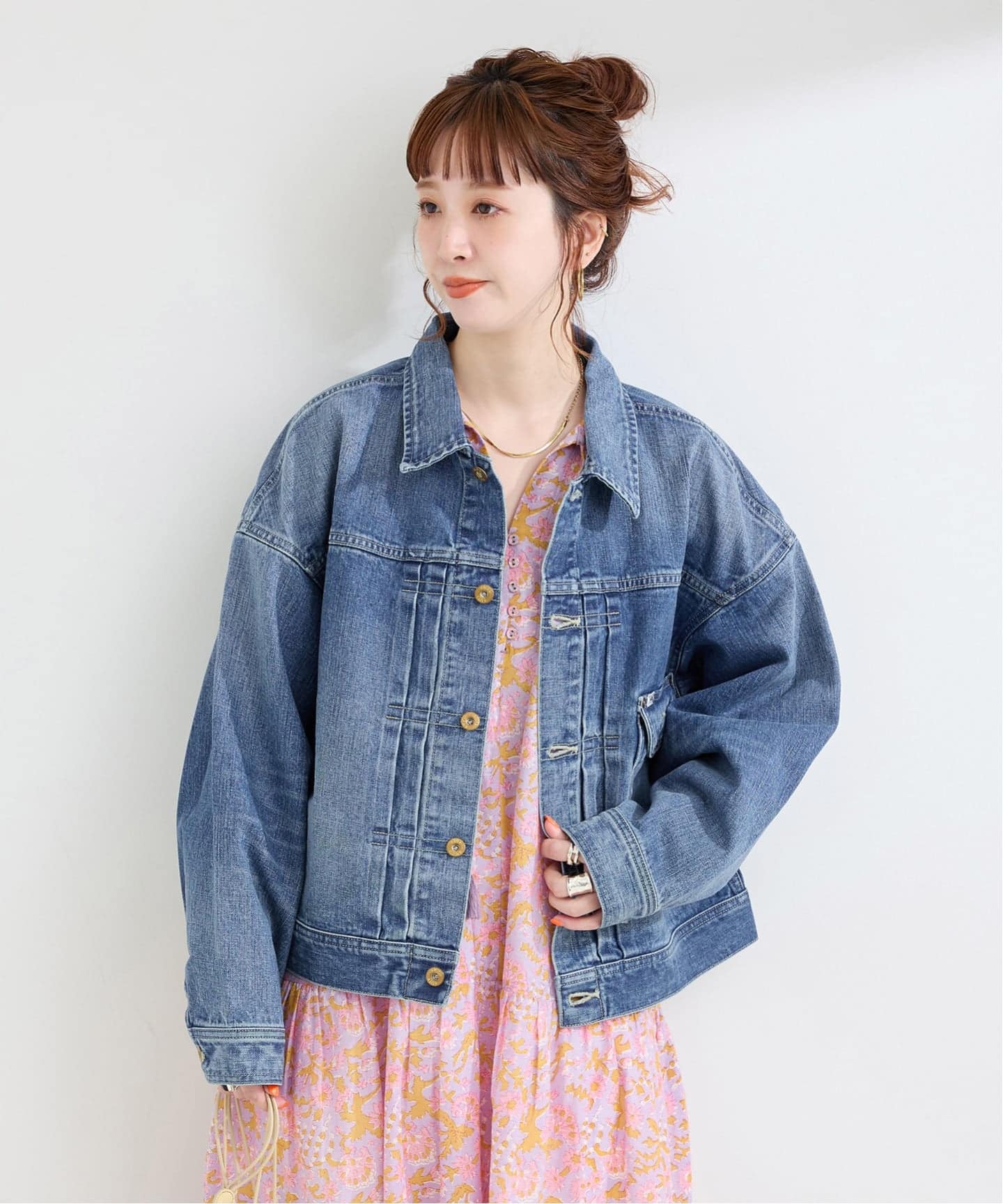 生地:13オンス。世界に誇るカイハラ社製、究極のサステナブルデニム使用。縦糸にリサイクルインディゴ、横糸にオーガニックコットンや再生糸をブレンド。環境への優しさと、デニム本来のタフさを両立させました。カイハラ社製『ゴールドレイン糸』は世界的なデニムメーカー「カイハラ」オリジナルの糸。雨のように美しい縦のムラ感が、着込むほどに唯一無二の表情へと育ちます。