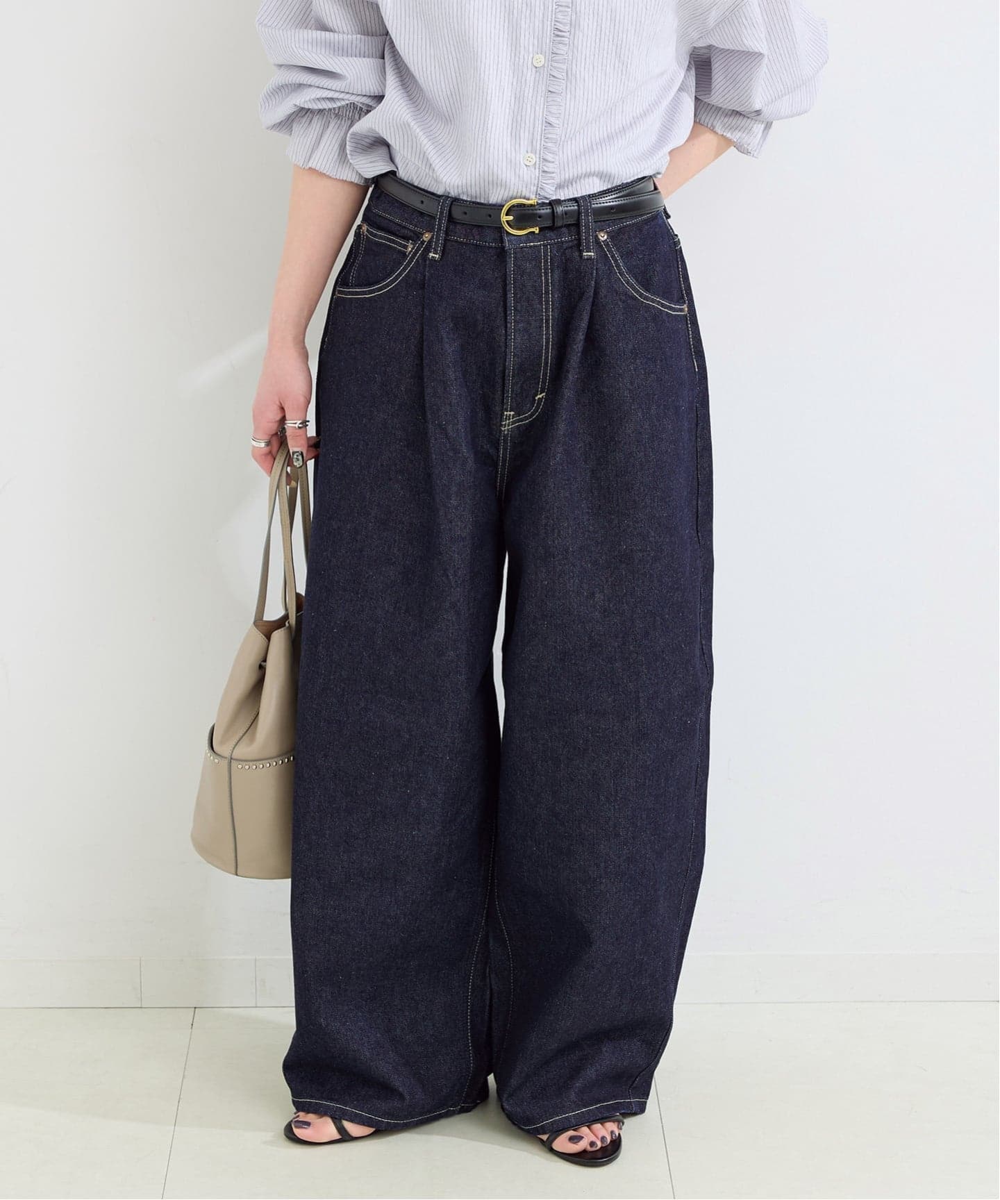 デニムの歴史に刻まれる「101 ANNIVERSARY」シリーズから、トレンドのタックパンツ。デニムの概念を覆す、大胆なワイドシルエットが魅力の「タックライダースパンツ」。ウエストに深く入ったタックが、腰回りにゆとりを持たせつつ、裾に向かって美しく流れるような立体感を生み出します。最旬の「ルーズ&ワイド」なトレンドとしても、また脚のラインを一切気にせず、それでいて「だらしなく見えない」大人の余裕を醸し出す一着としても使えるシルエットです。国内の熟練工による縫製が、この大胆なボリュームを「上質なファッション」へと昇華させています。