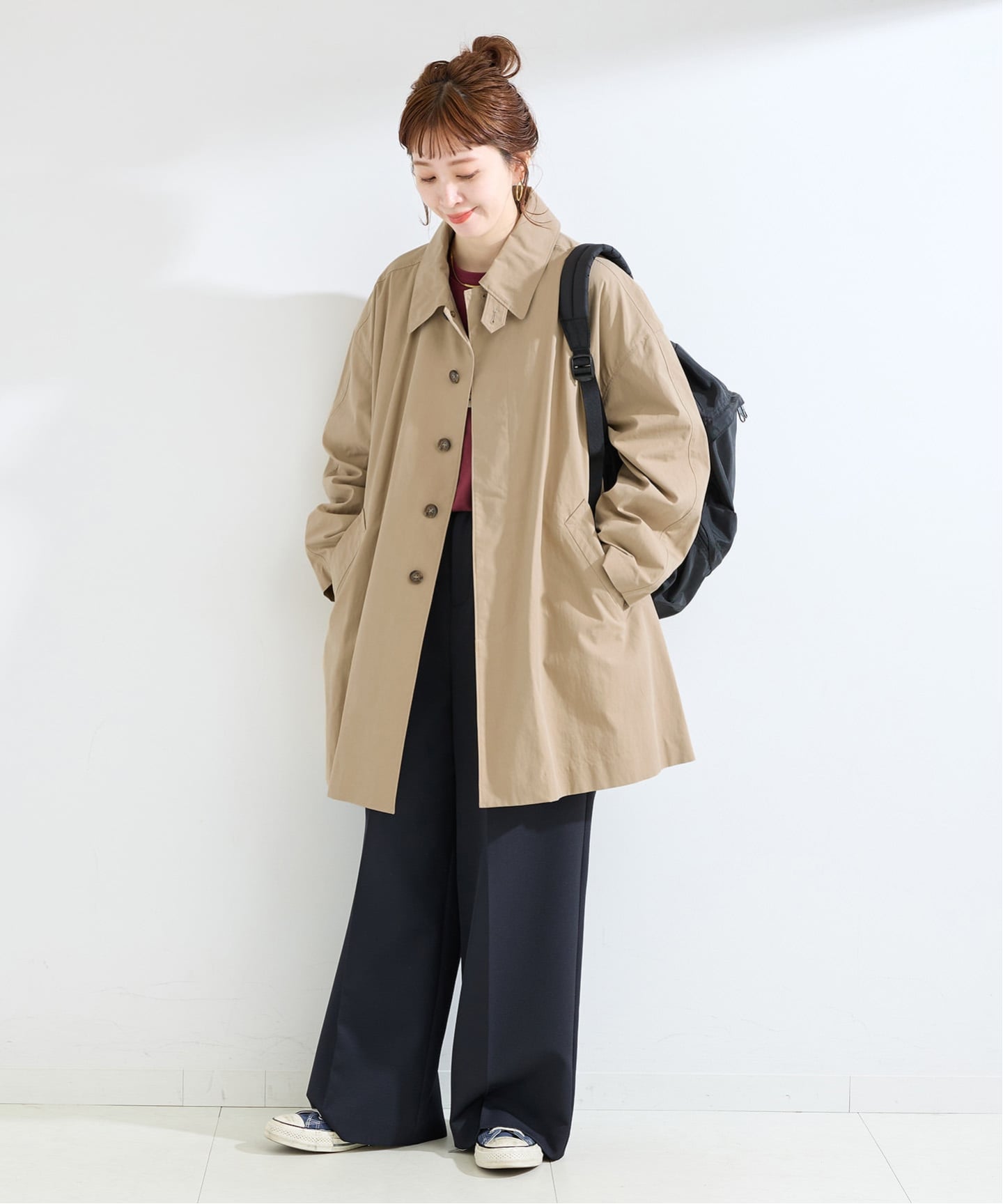 テントラインのゆるやかな広がりが、重たくなりがちな冬コーデを一気に軽やかに。
