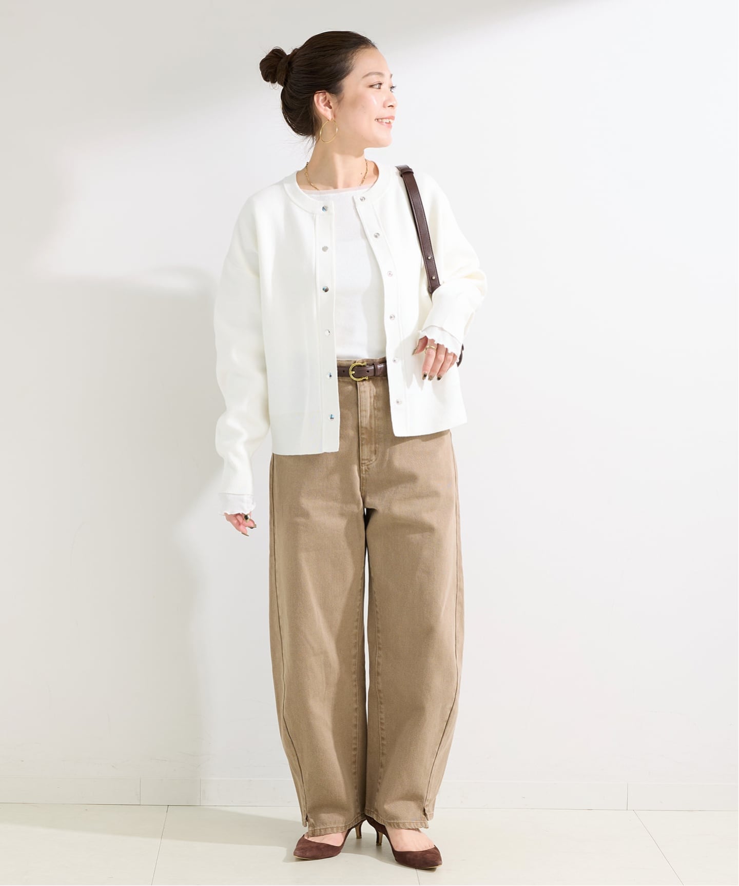 冬コーデに“白”や“春カラー”を差すだけで、グッと春ムードに。