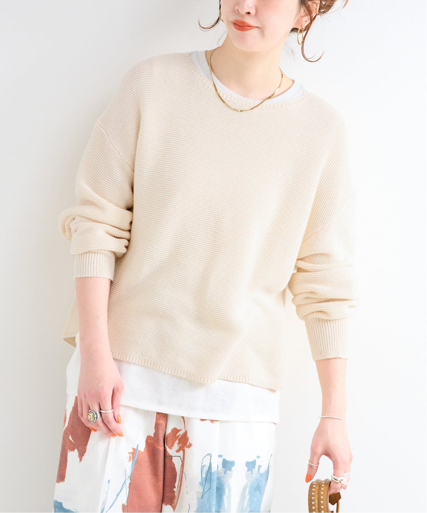 “冬ニットはもう重たい…”という方にぴったりな、軽やかニットです◎