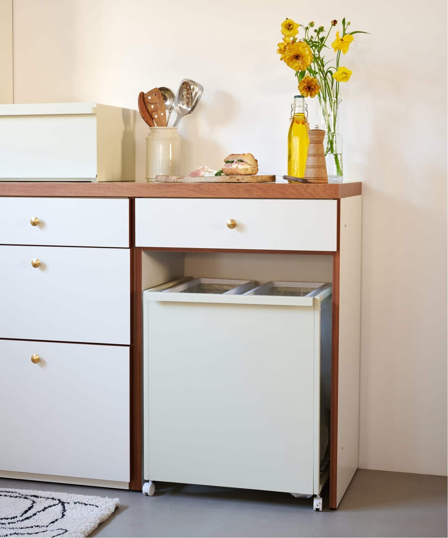 ゴミ箱を設置できるスペースを確保した、実用性の高いユニット。