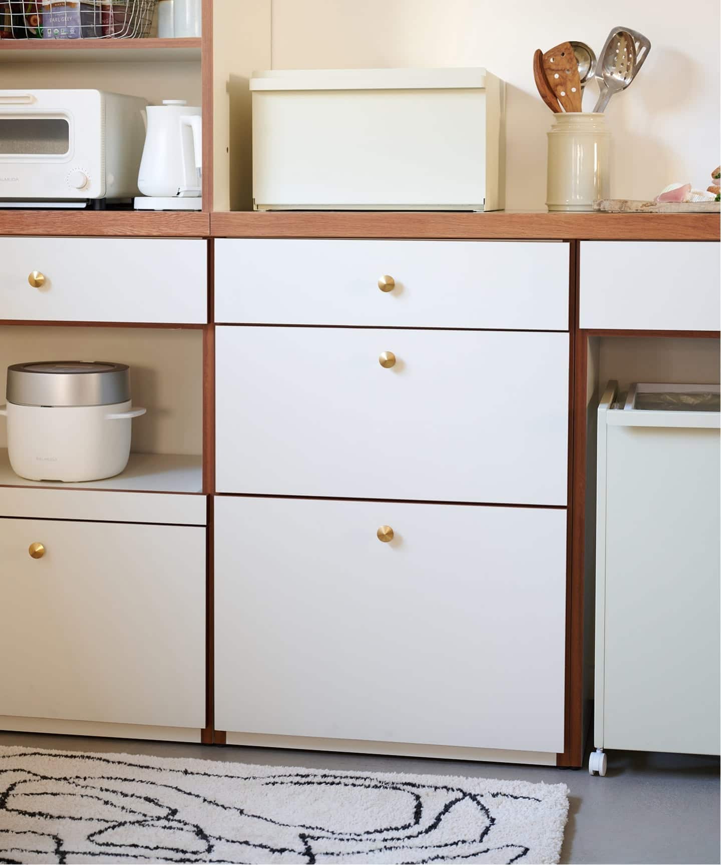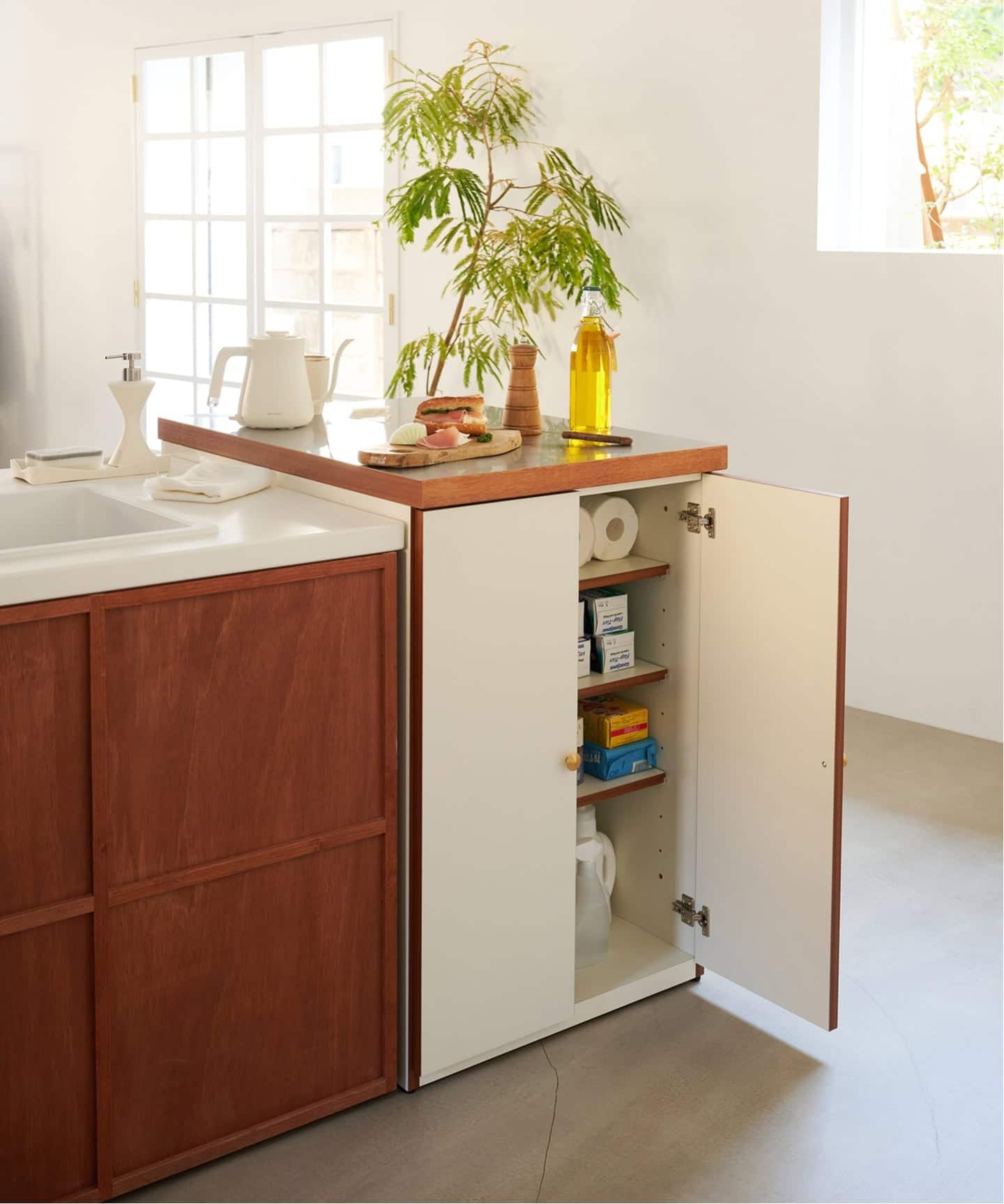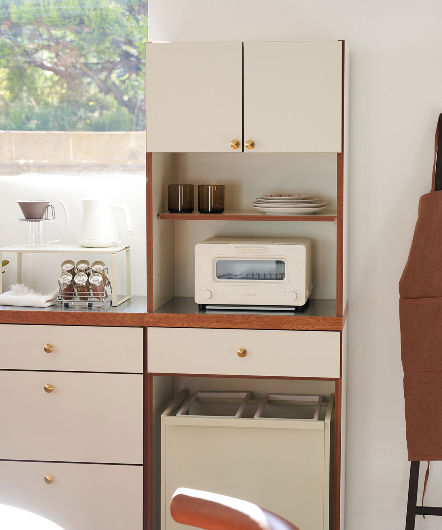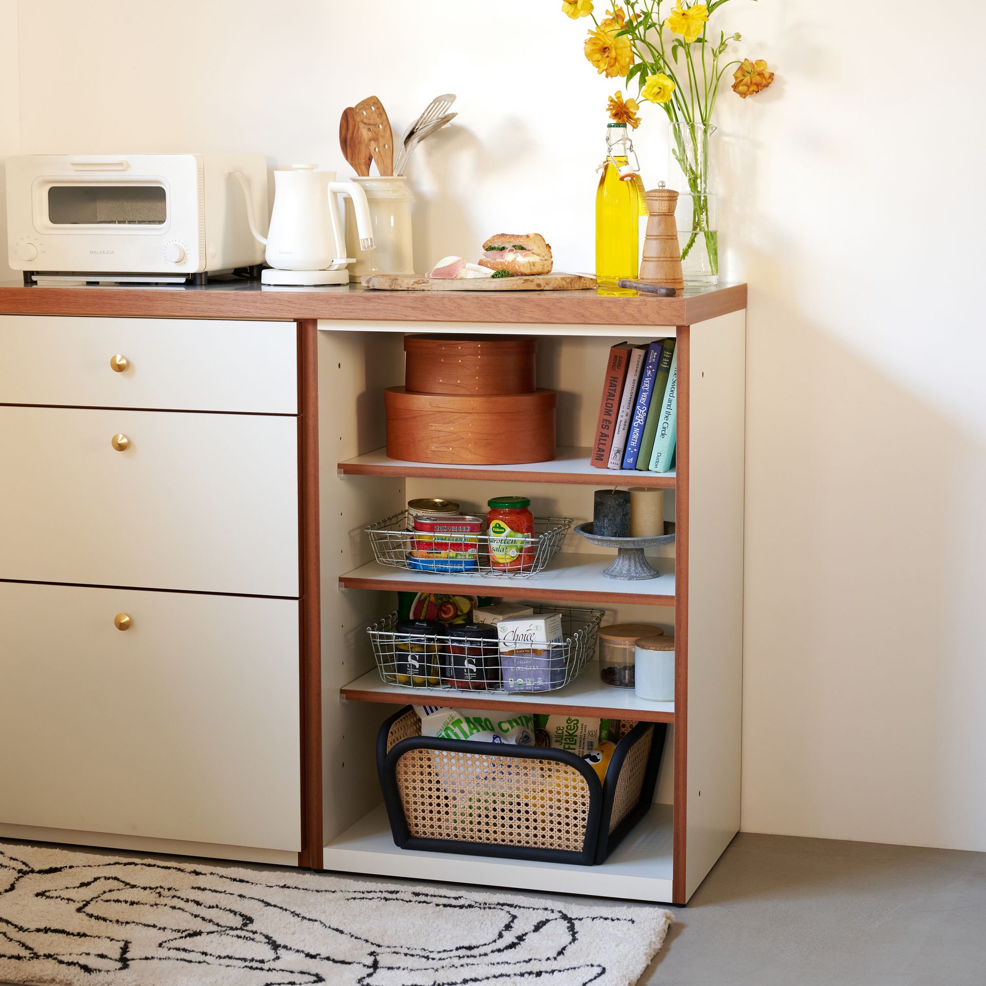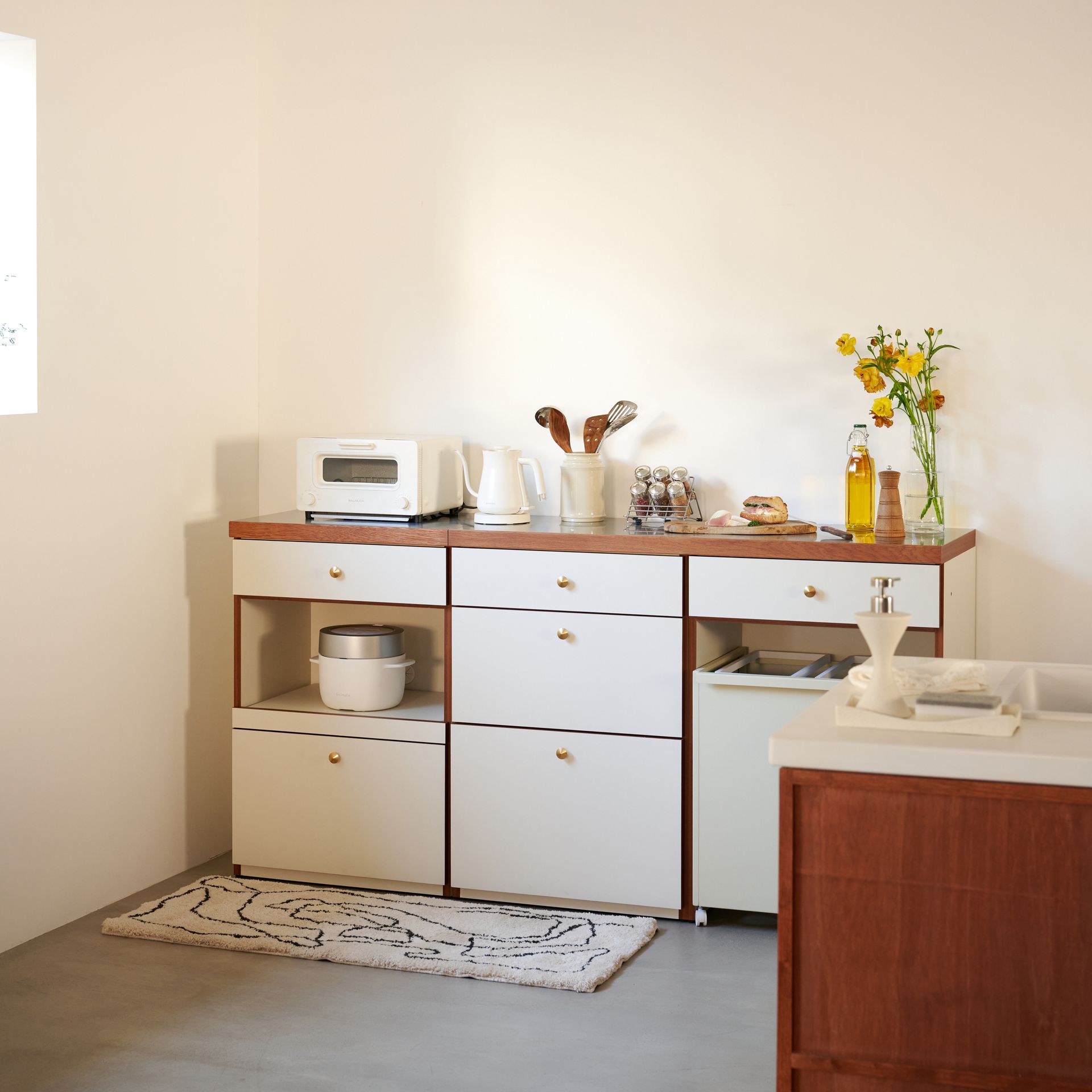 キッチンまわりはもちろん、リビング収納やワードローブ用途にも使いやすいユニットです。