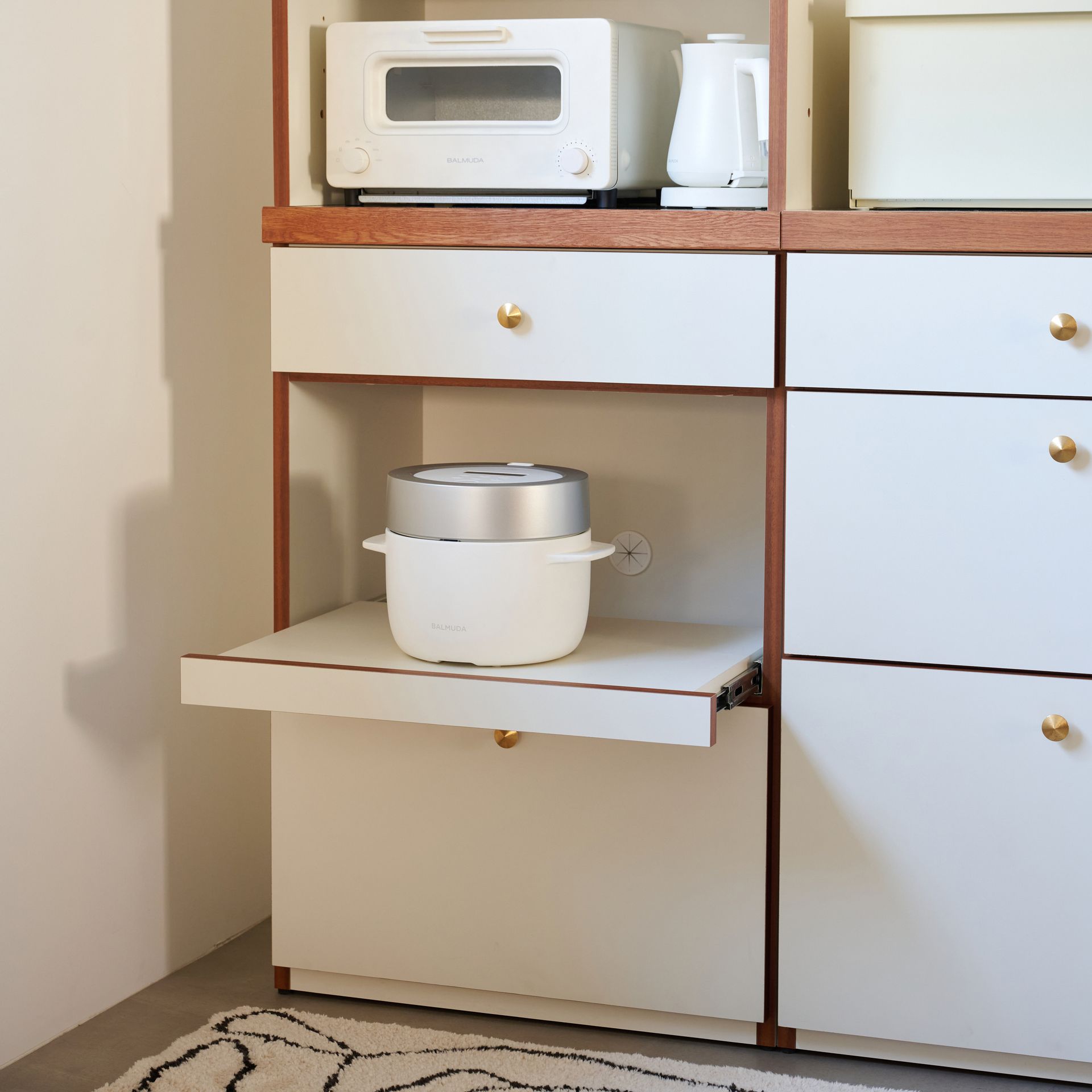 炊飯器などの家電を設置できる、スライド式の収納スペース。