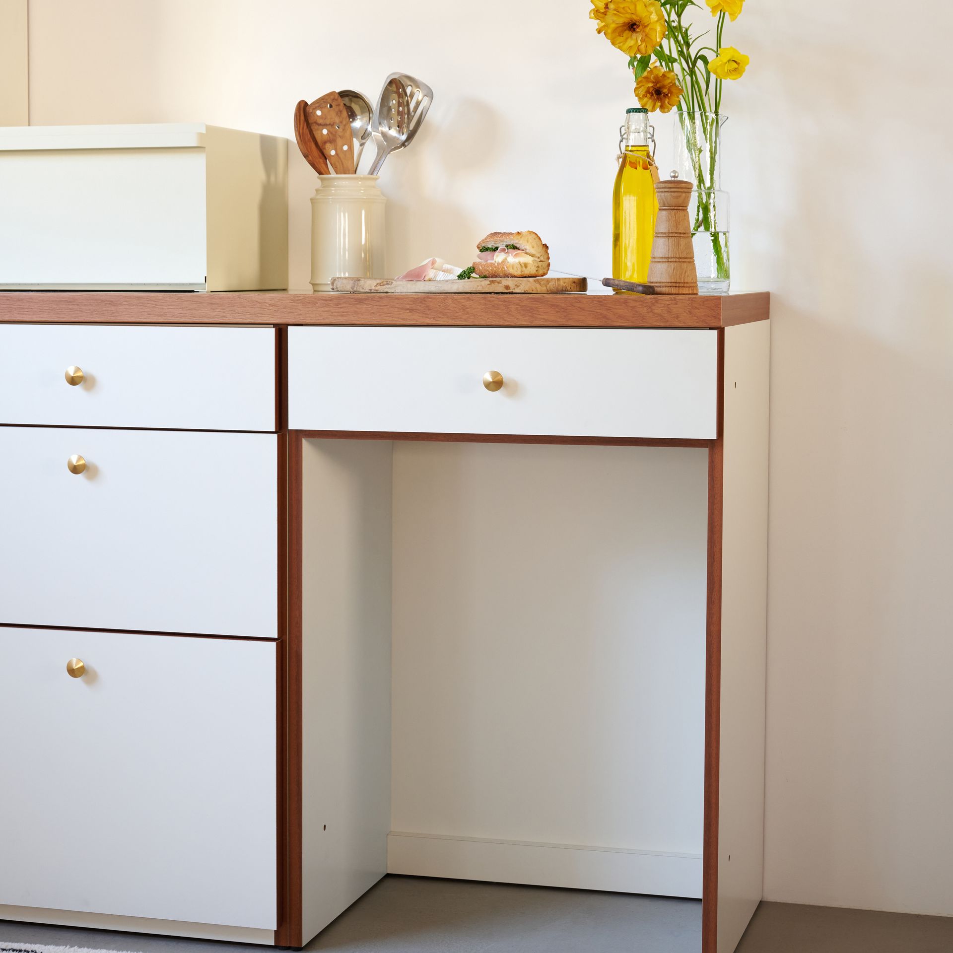 食器やカトラリー、キッチンまわりの小物収納に便利な引き出し仕様。