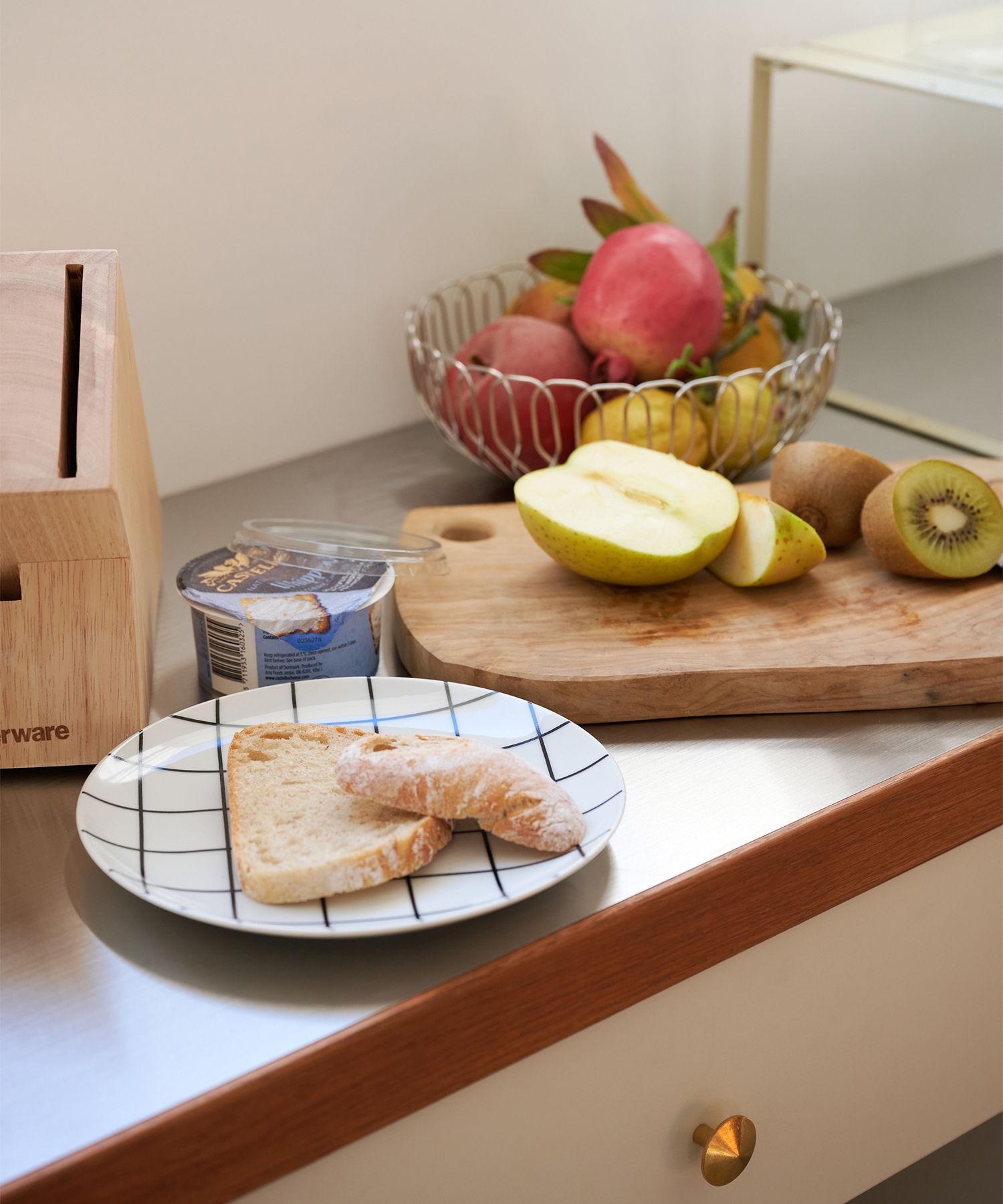 家電を含め、白を基調とした構成になりやすいキッチン空間に自然となじみながらも、クリーンさの中にどこか懐かしさを感じさせる、少しノスタルジックな佇まいを目指してデザインしました。