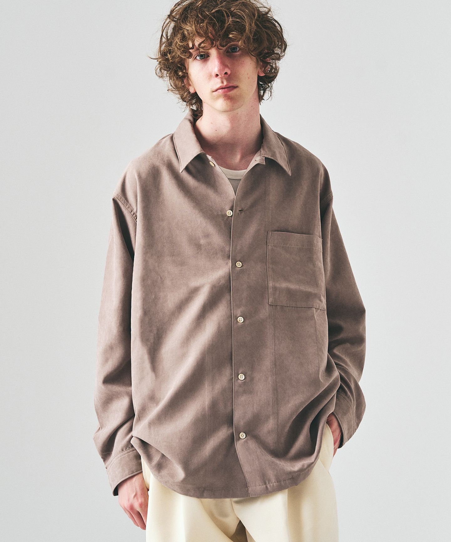 薄手のポリエステル素材に起毛加工を施し、スエードのようななめらかさと柔らかな風合いが特徴。ベーシックなシャツに飽きた方へ。素材感で楽しむのも大人の選択です。