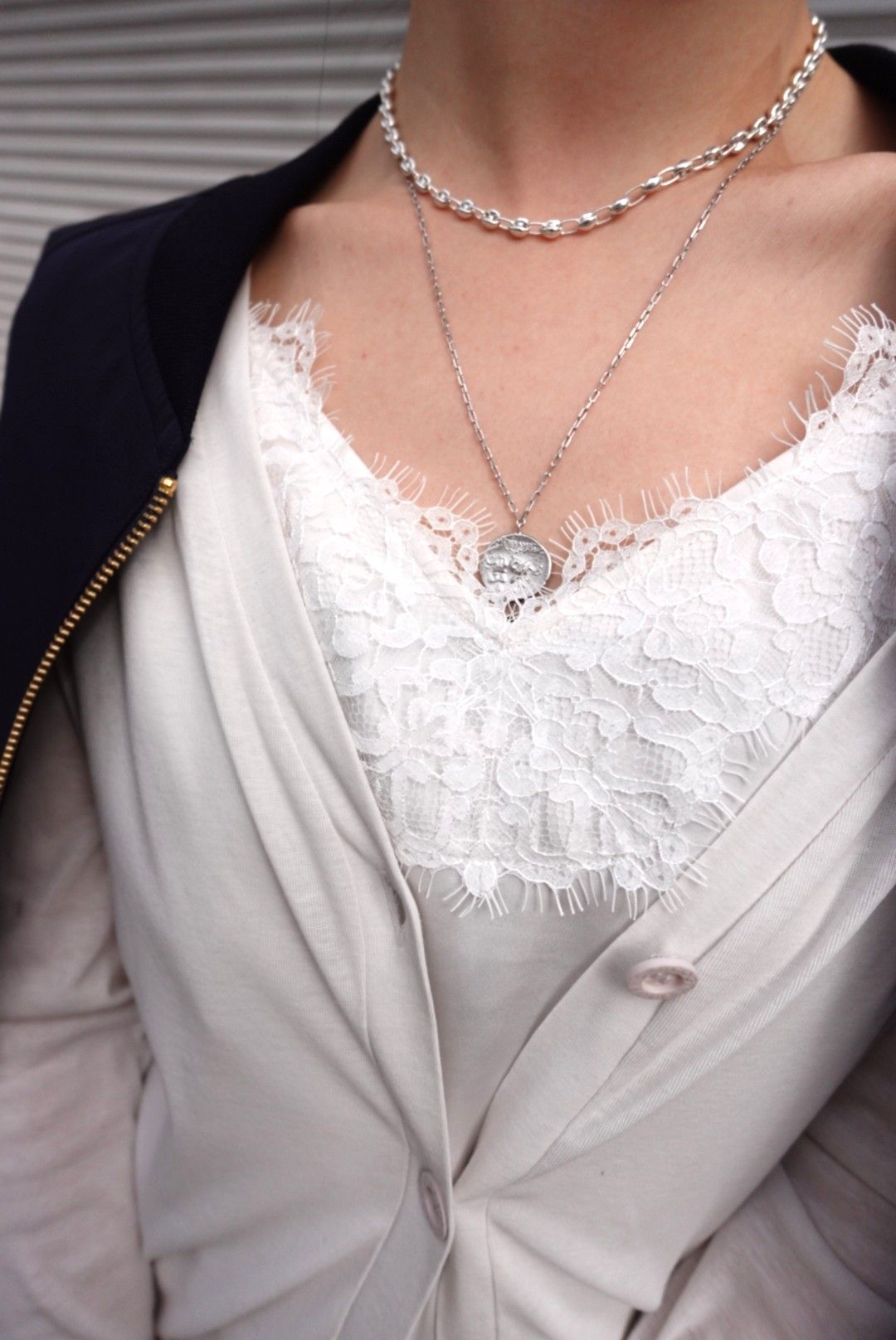 この春、とくに人気なレースをあしらったキャミソールに、