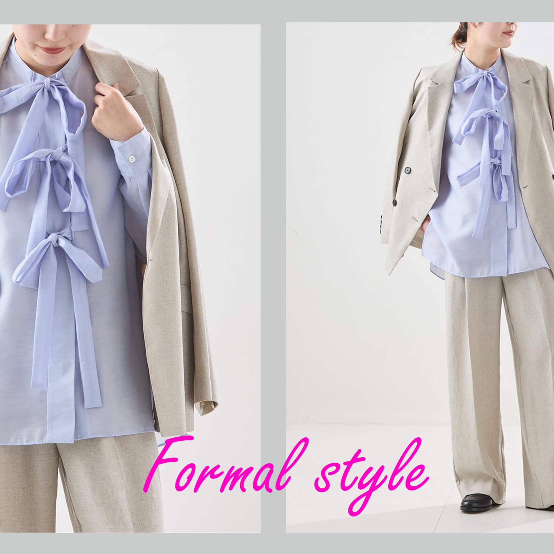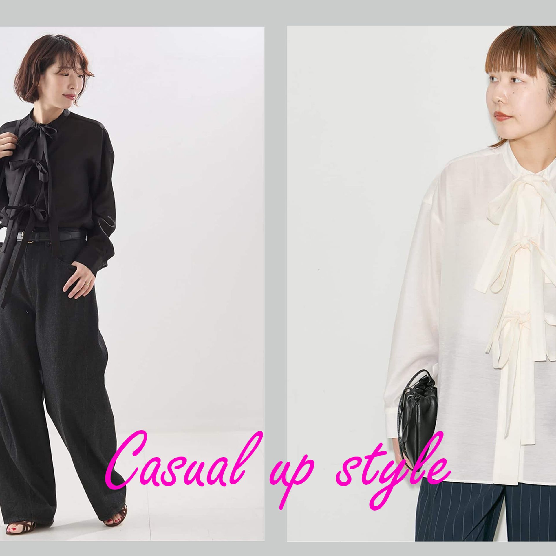 グッと華やかな印象になるリボンブラウスは、スラックスパンツなど少しメンズライクなアイテムやデニムなどカジュアルなアイテムとのスタイリングがおすすめです。