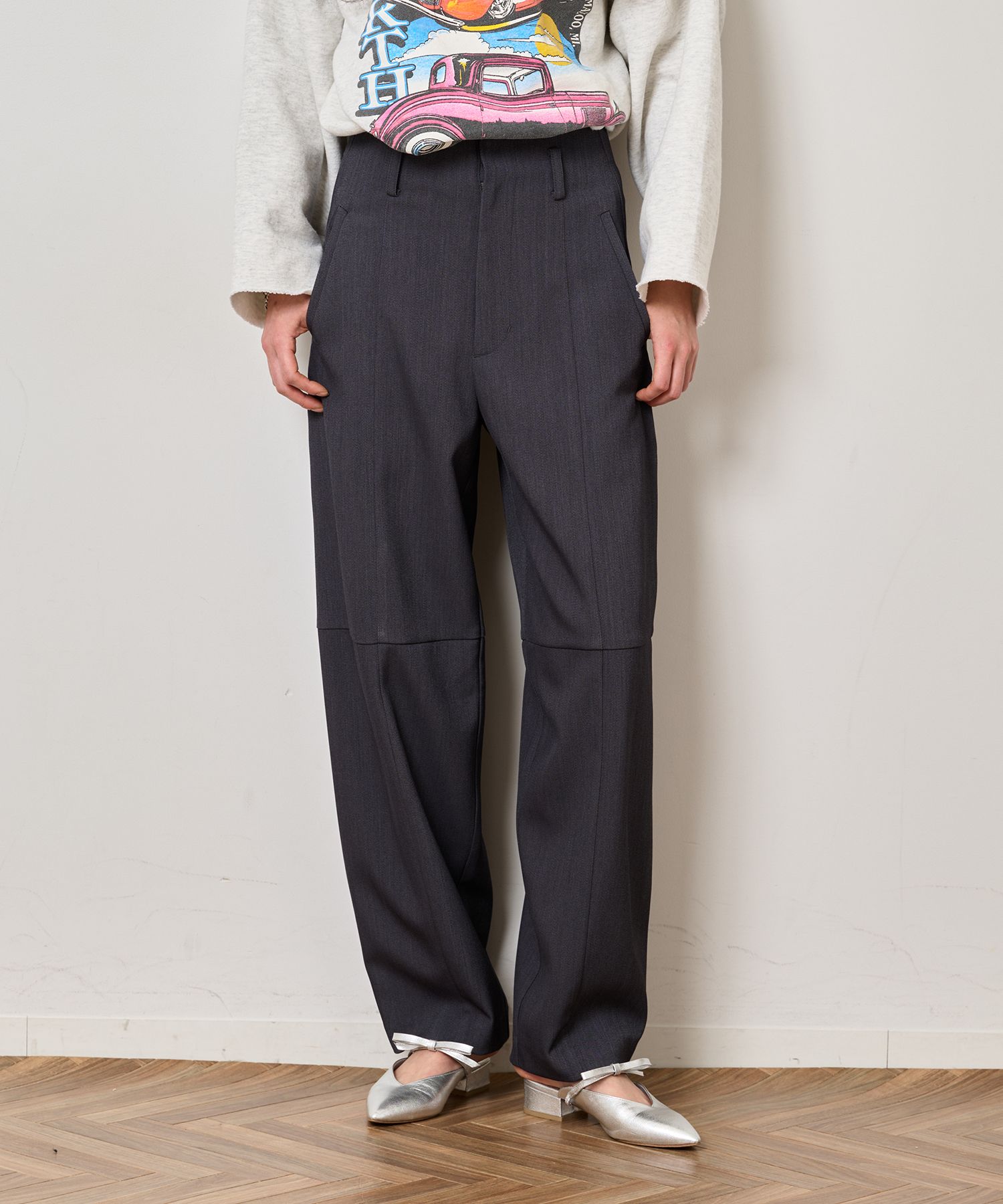 素材は上品な光沢とハリ感、ドレープ性がありモード感とリラックス感を兼ね備えたパンツに仕上げています。