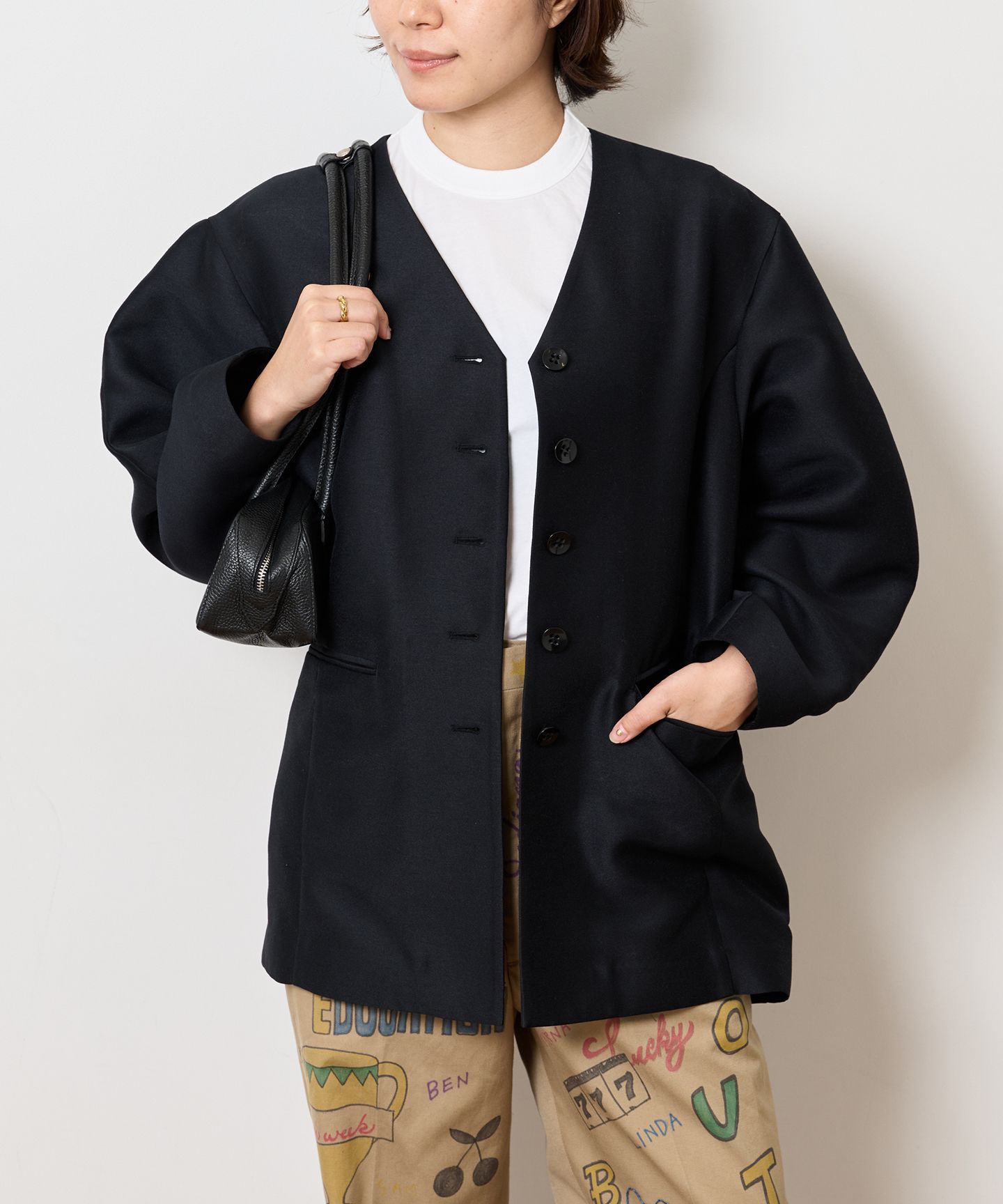 丸みのあるカーブスリーブと女性らしいシェイプしたウエストが魅力のジャケット。