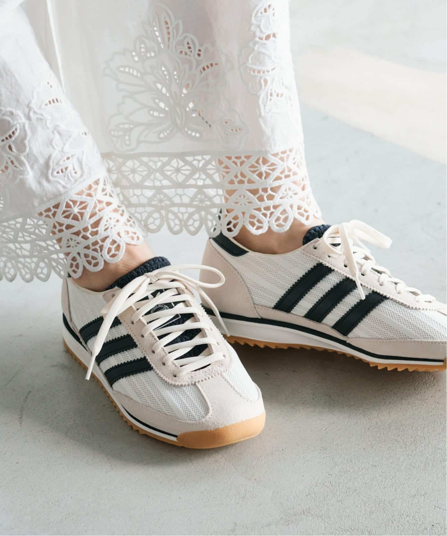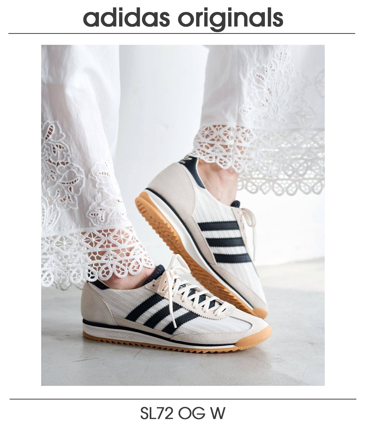 クラシックなSL72を現代的に仕上げた≪adidas SL 72 OG≫は、レトロ感と今らしさが絶妙に融合した一足。