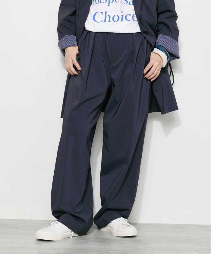 たっぷりタックの入ったワイドパンツはこれからの時期に嬉しい機能的素材。梅雨時期に嬉しい撥水機能と夏に嬉しいUVカット機能のパンツです。ストレッチもある素材は穿き心地抜群です。通勤やレジャーどんなシーンもOKなパンツは色違いで持っていても◎同シリーズのジャケットとのセットアップもおすすめです。