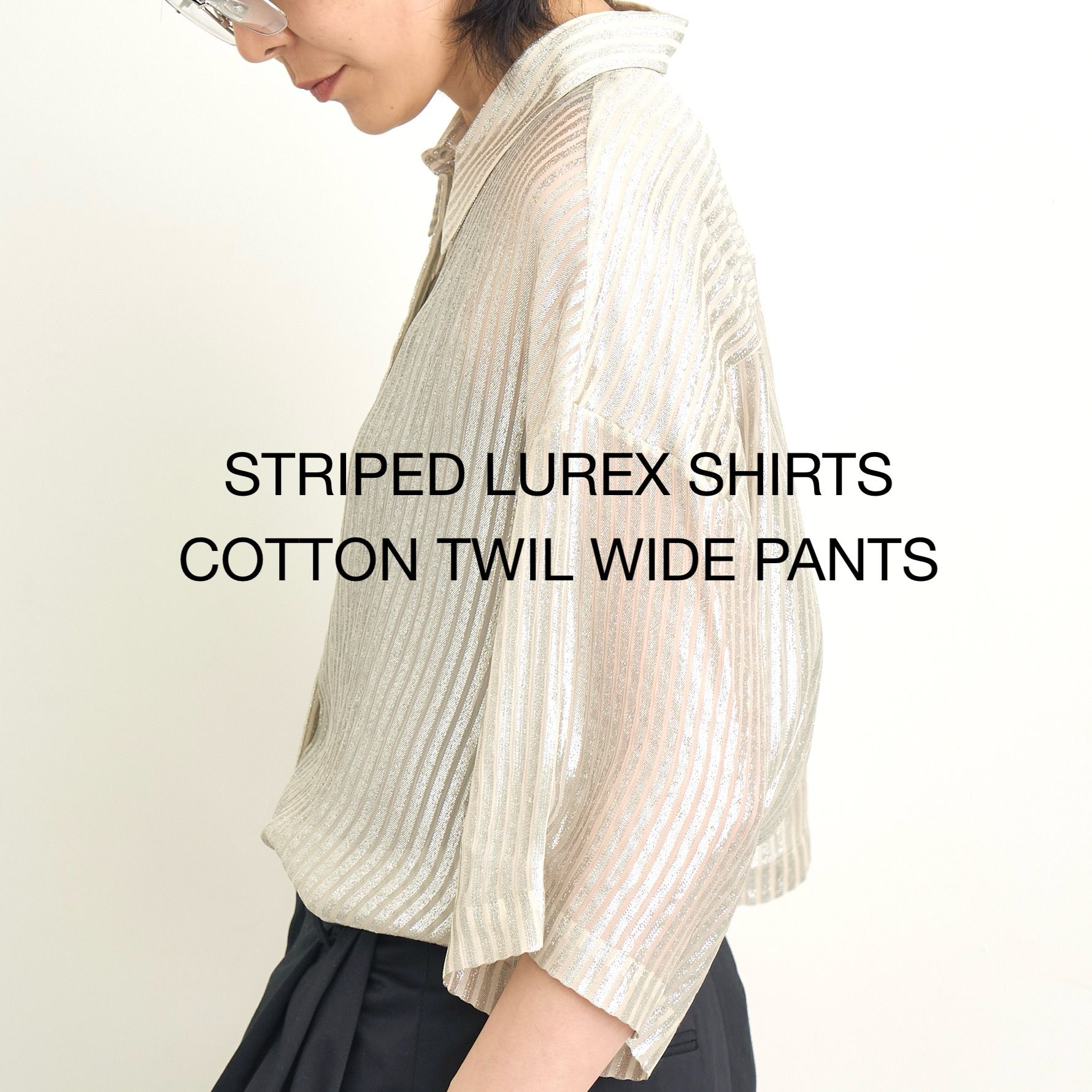 INDRESSらしいラメストライプが魅力のシャツ。繊細にきらめくラインが動くたびに表情を変え華やぎをプラスしてくれます。