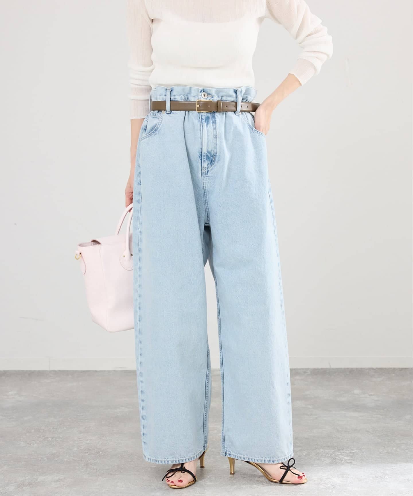 デニムは白に近いニュアンスカラーになるようにブリーチ加工を施したデザイナーこだわりのアイテム。