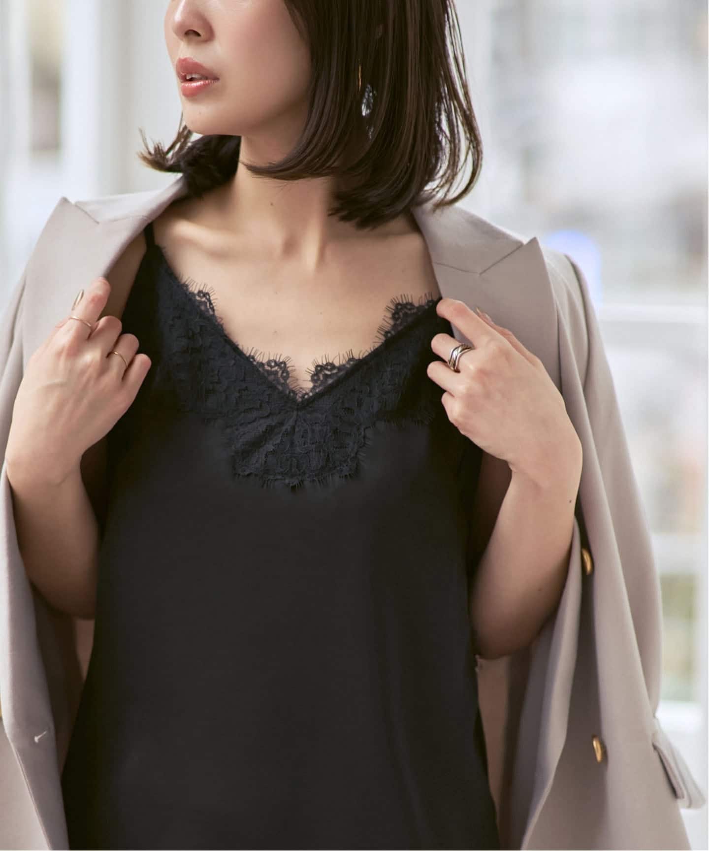 トップとヘムラインを繊細なレースで装飾した、女性らしさとトレンド感を存分に高めてくれる大人気キャミソール。
