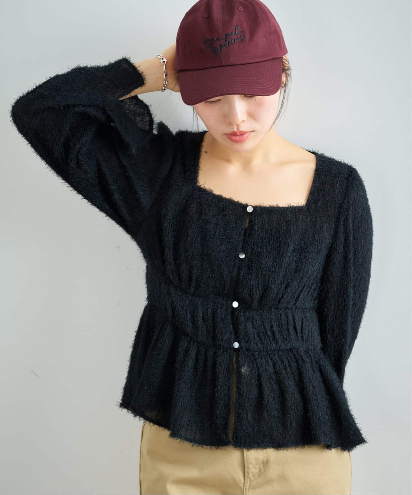 袖口と裾のメローデザインで、シンプルながらもさりげない甘さのある一着。